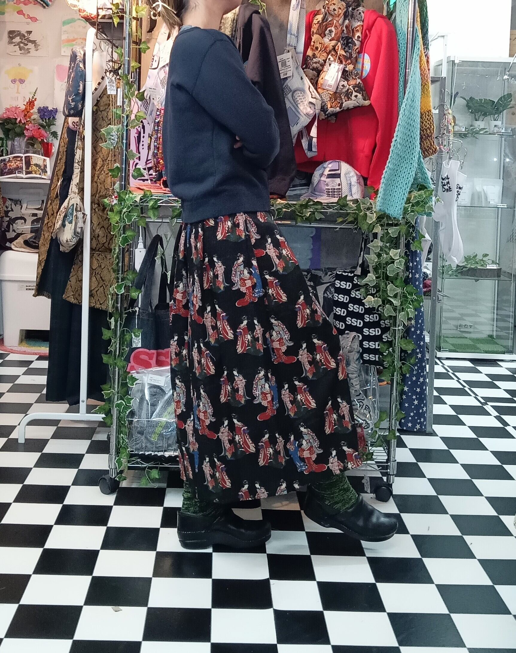 町娘和柄フレアプリーツスカート。