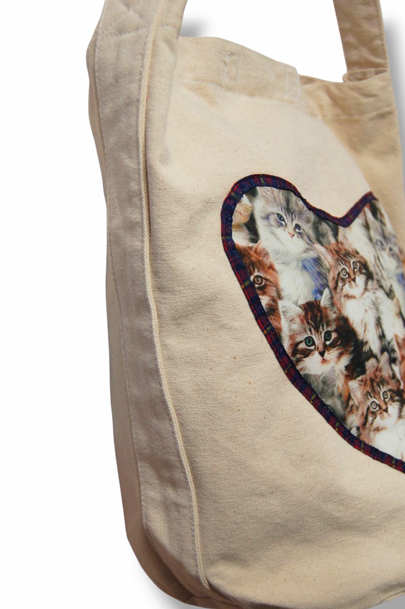 キュートなリアルキャット♡パッチデザインのオリジナルバケツ型キャンバストートバッグ。