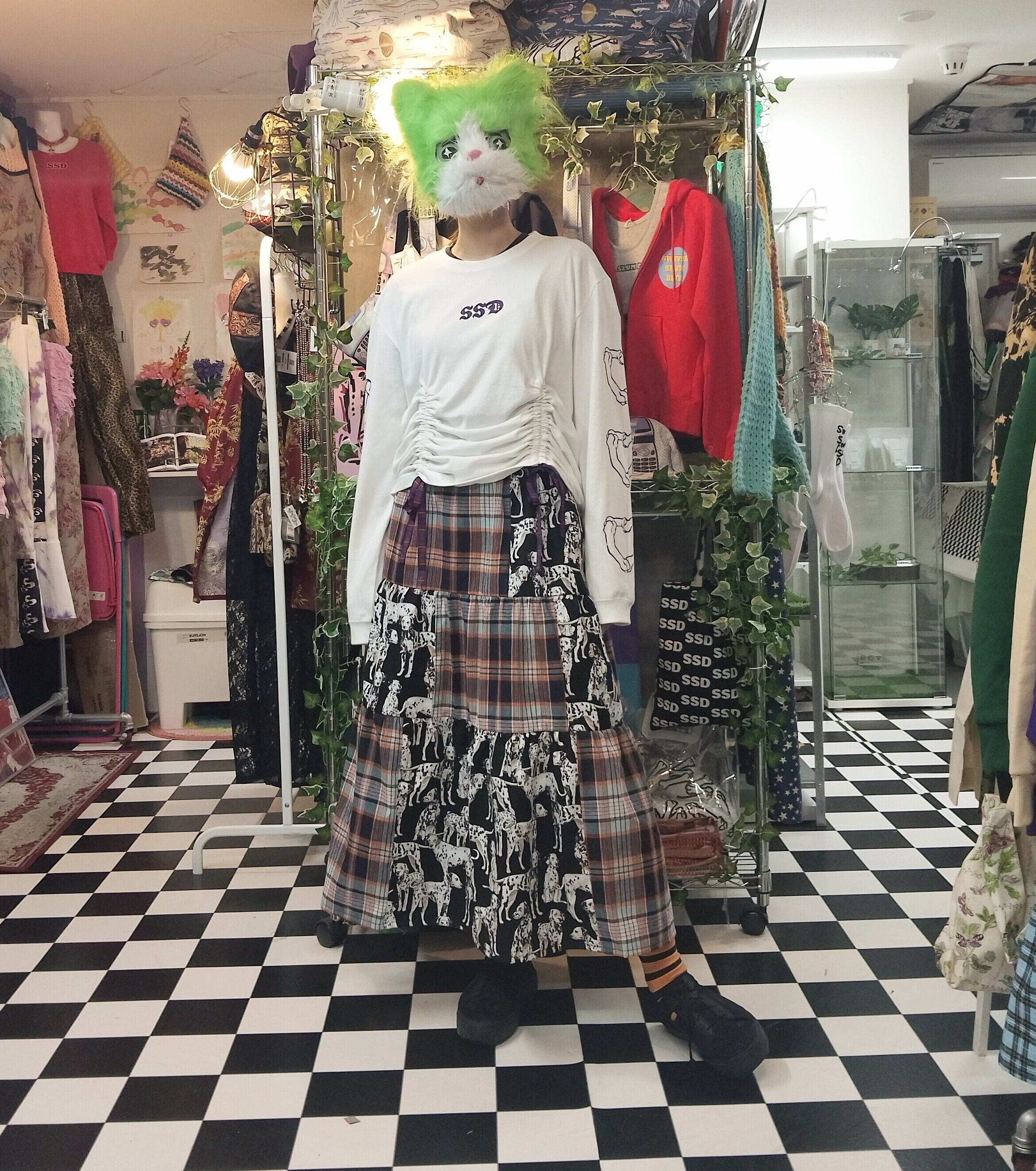 ダルメシアン×マドラスチェック ミックス ティアードロングスカート