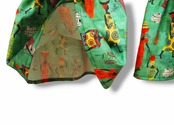 鮮やかなグリーンベースにカラフルな衣装が素敵なアフリカの女性達が散りばめられた珍しい生地デザイン。
