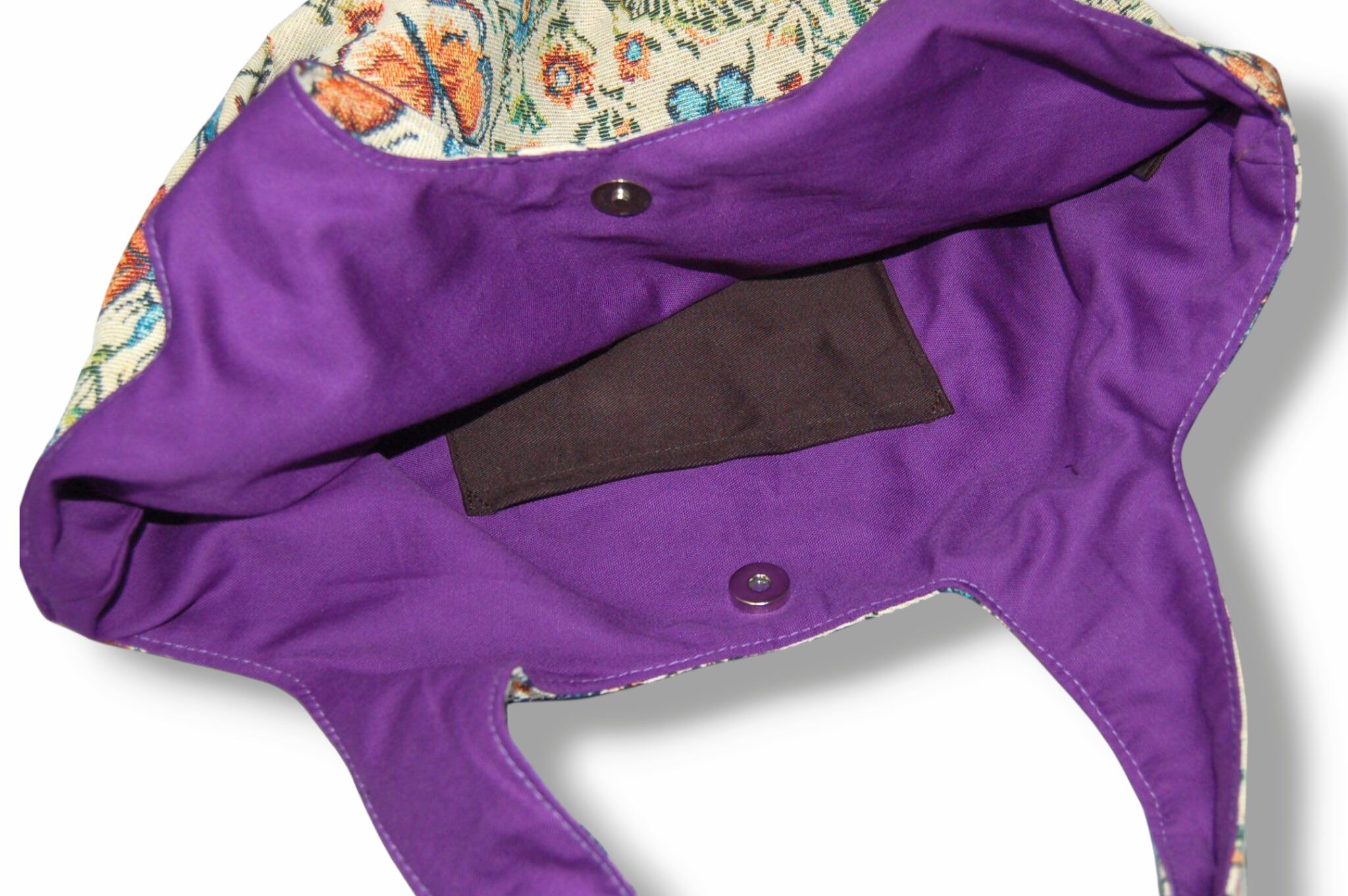 蝶々×花柄ゴブラン織 バルーントートバッグ。