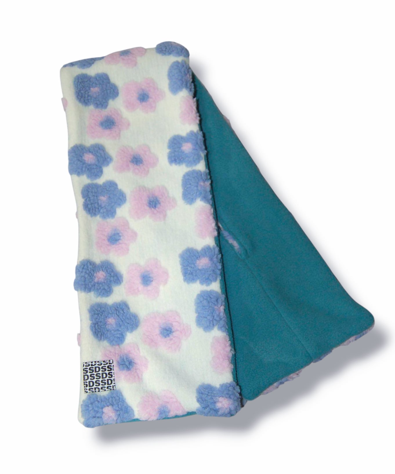 花柄ボア×ターコイズブルーフリースティペットマフラー。
