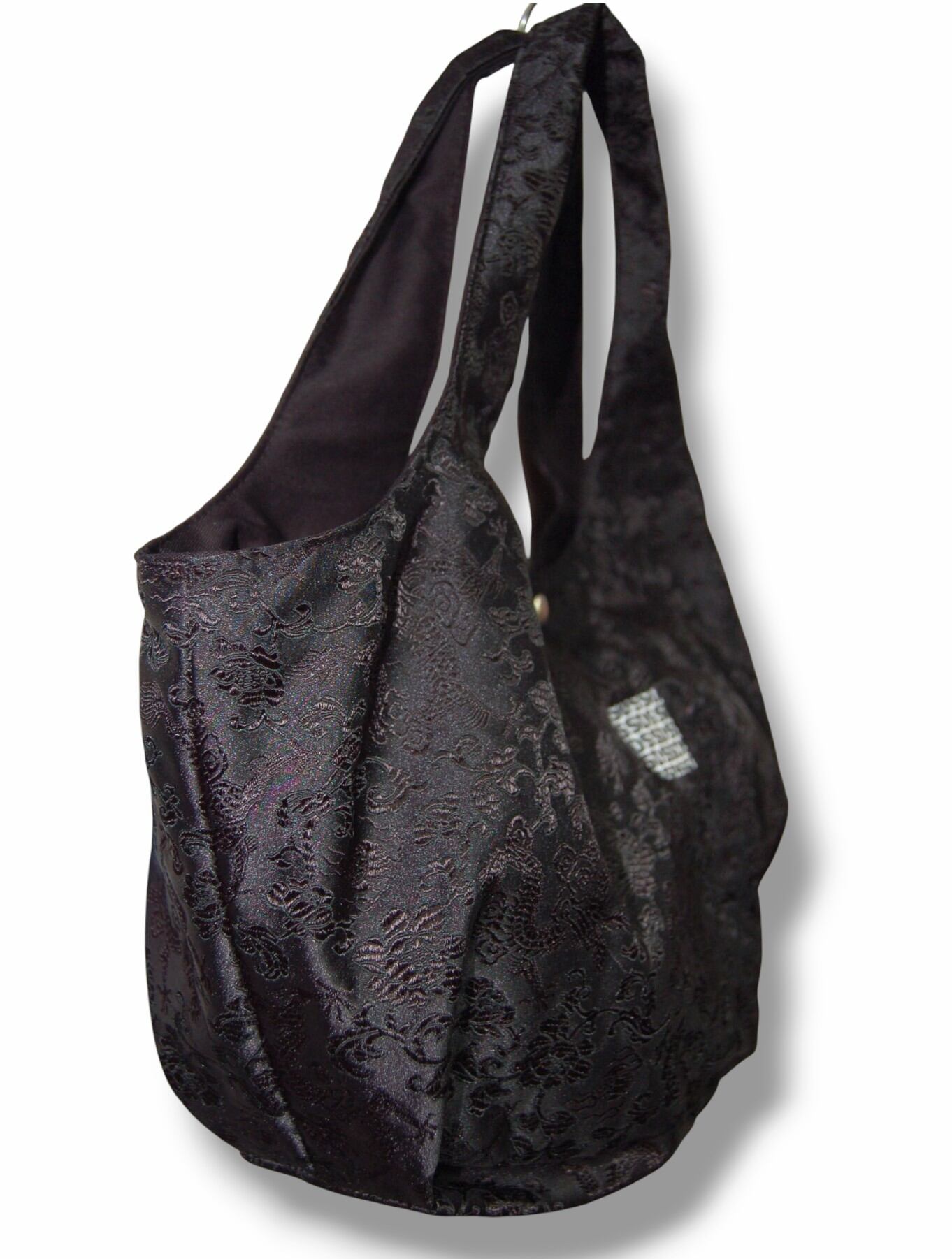 SSD 龍×花柄デザインチャイナ生地のバルーントートバッグ。