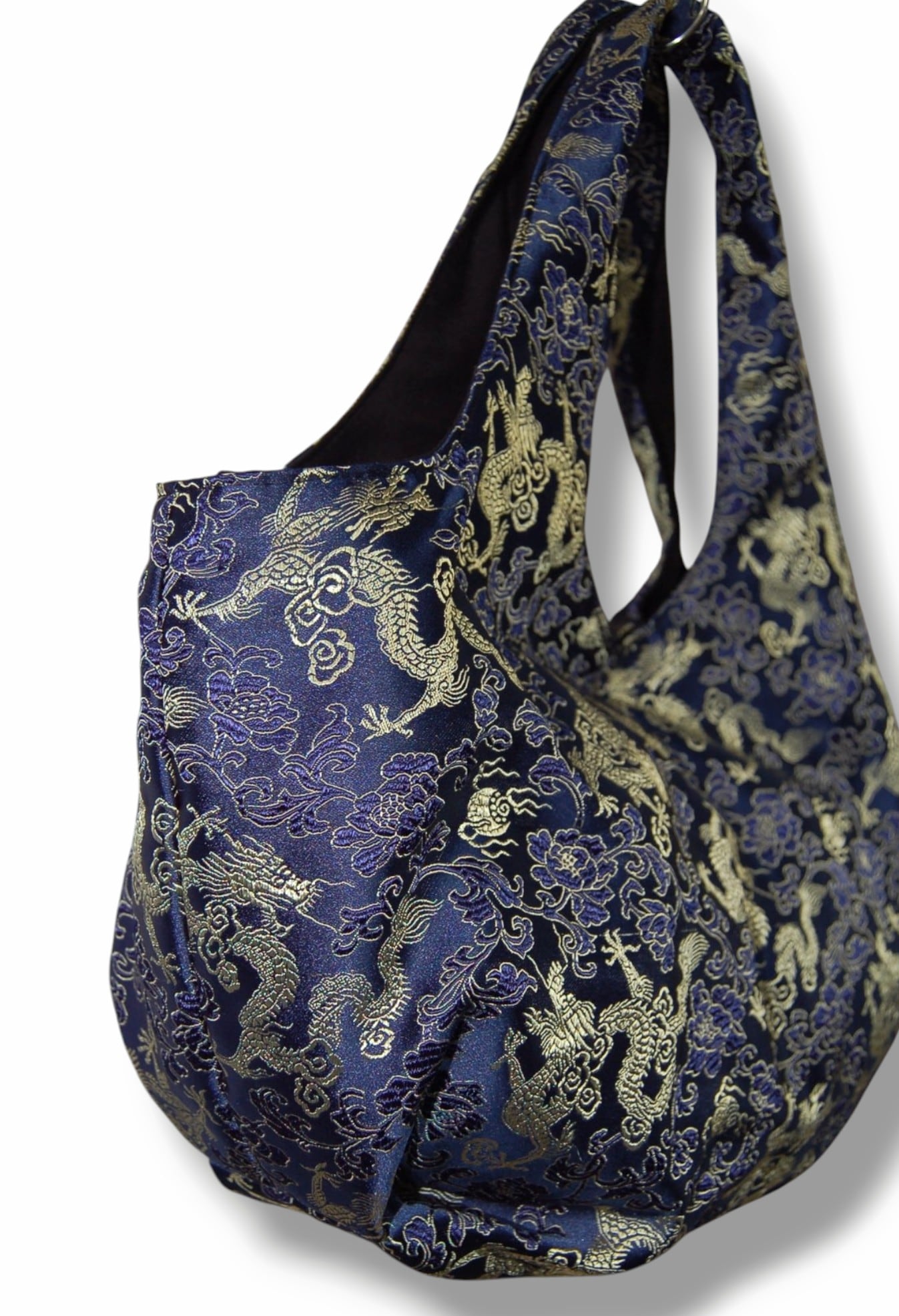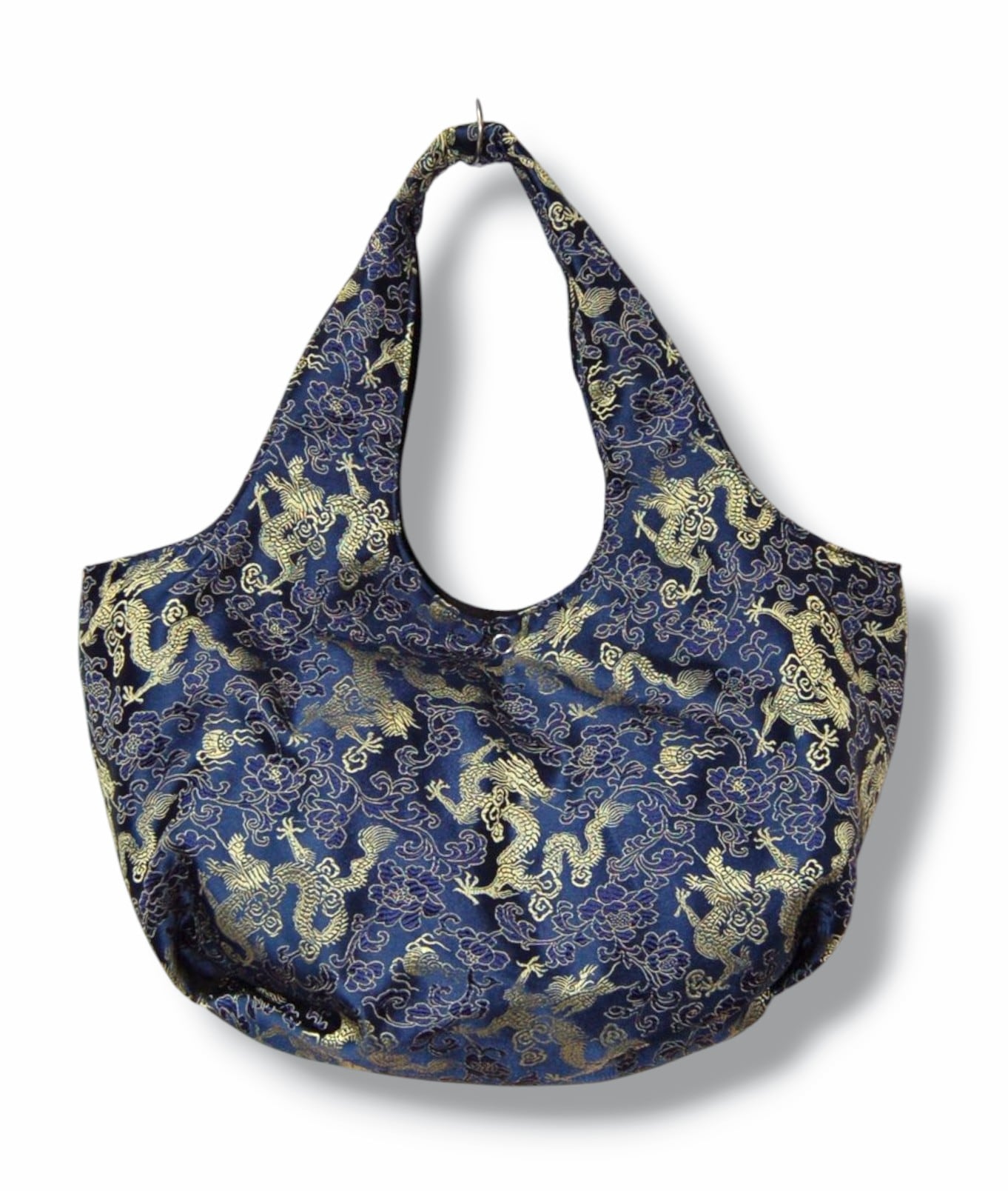SSD 龍×花柄デザインチャイナ生地のバルーントートバッグ。