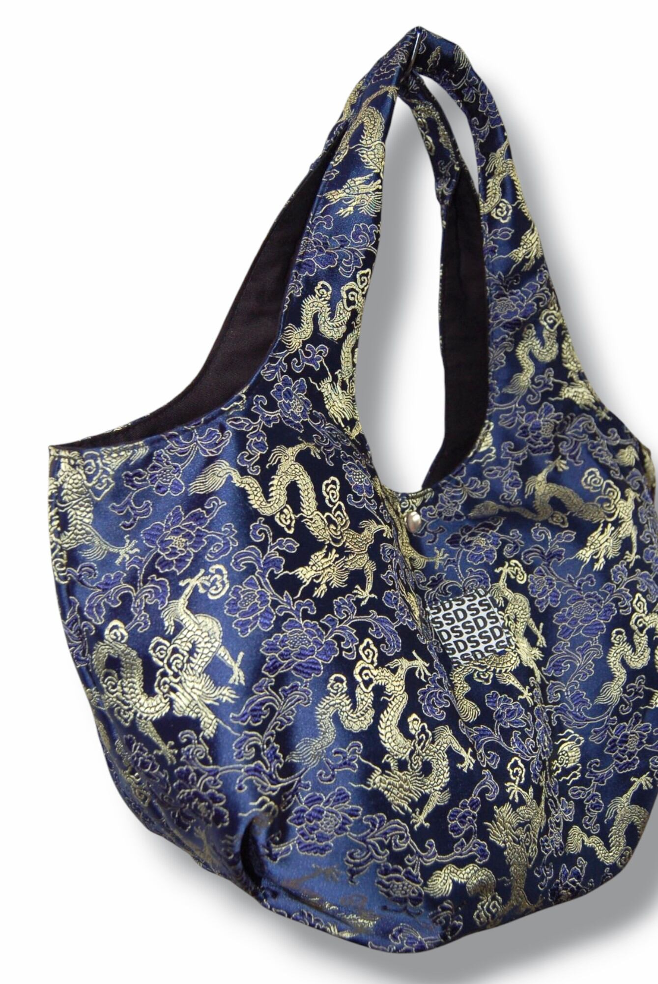 SSD 龍×花柄 チャイナバルーントートバッグ:ブルー
