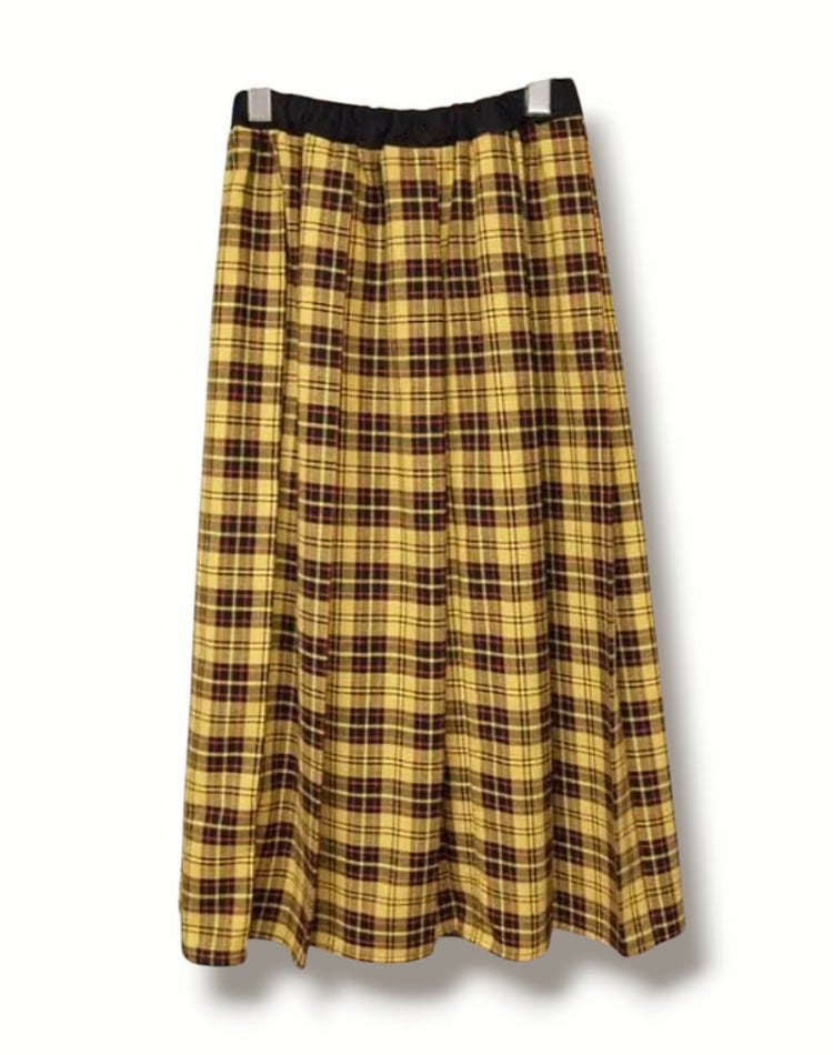 タータンチェック コットンフレアプリーツロングスカート:イエロー
