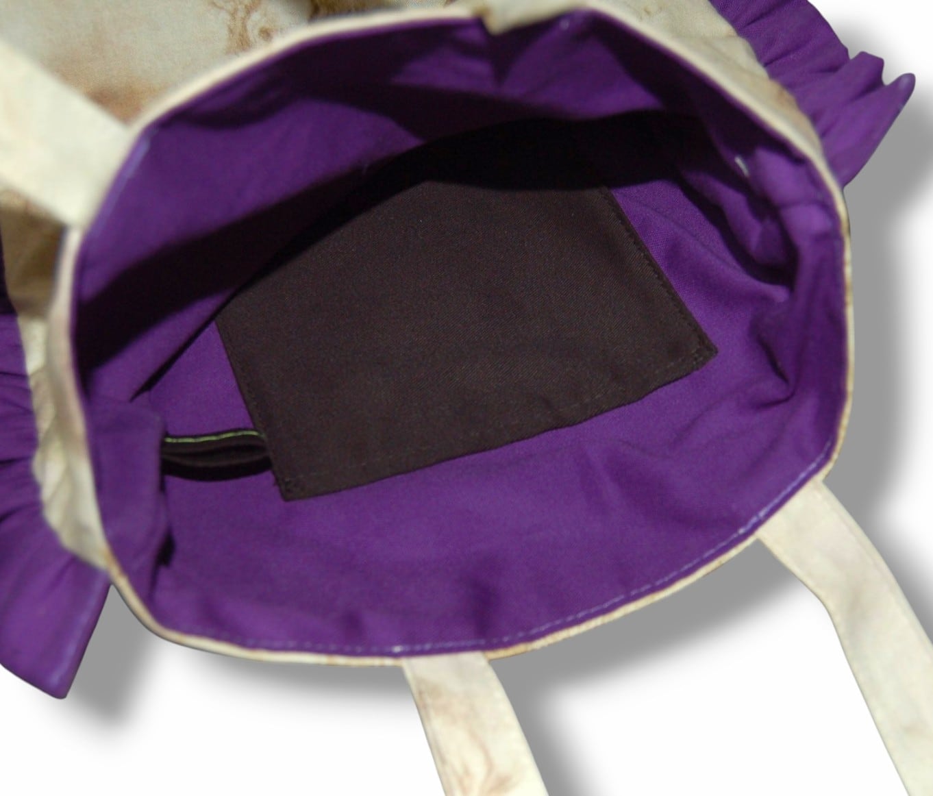 USAcotton ダヴィンチデザイン×パープルフリルトートバッグ。