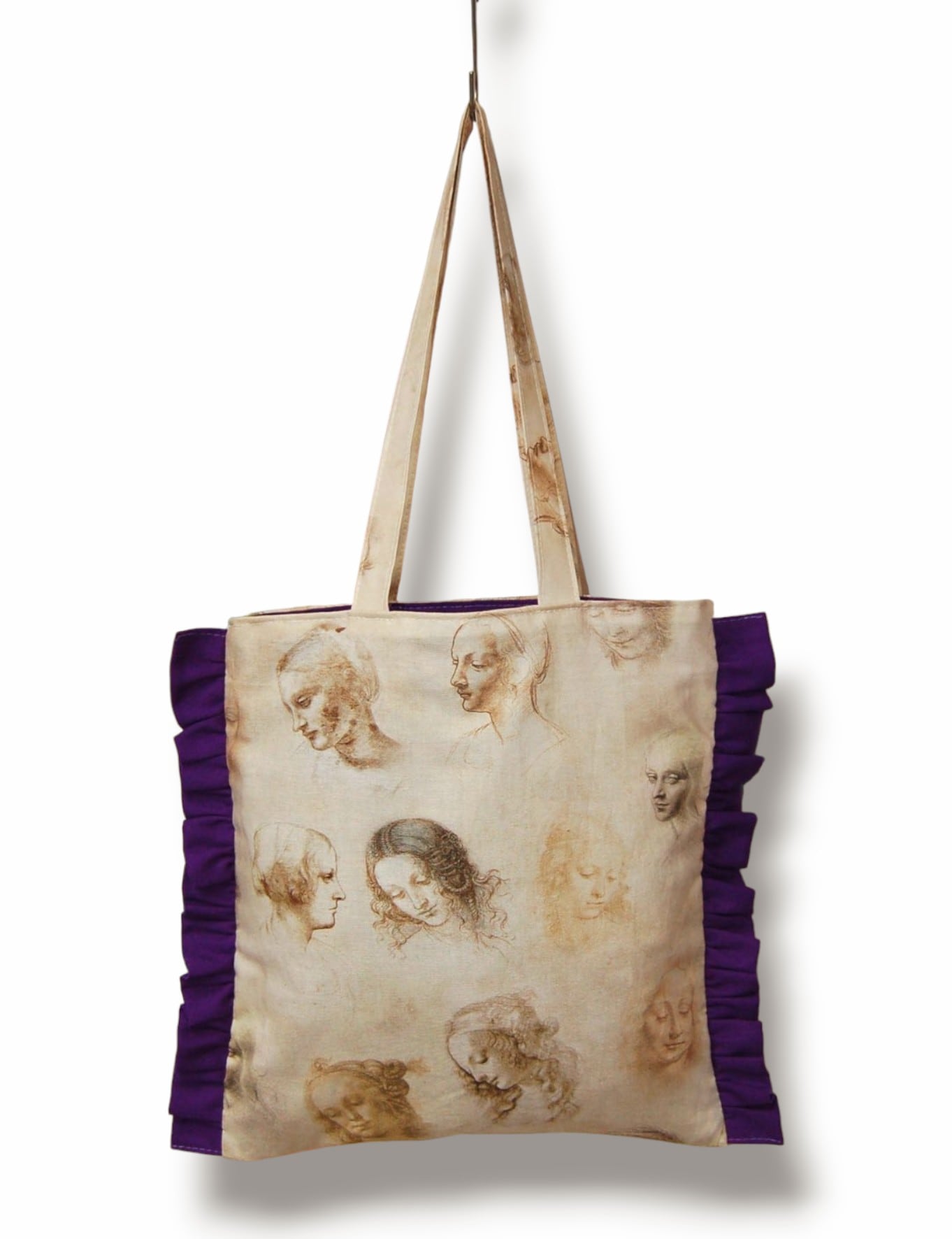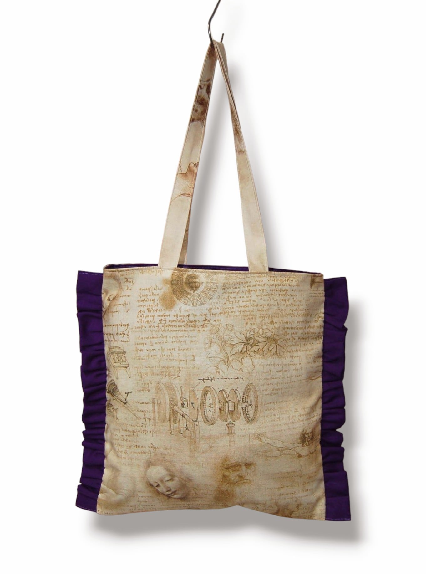 2デザインのダヴィンチデザインを使用したフリルトートバッグ。