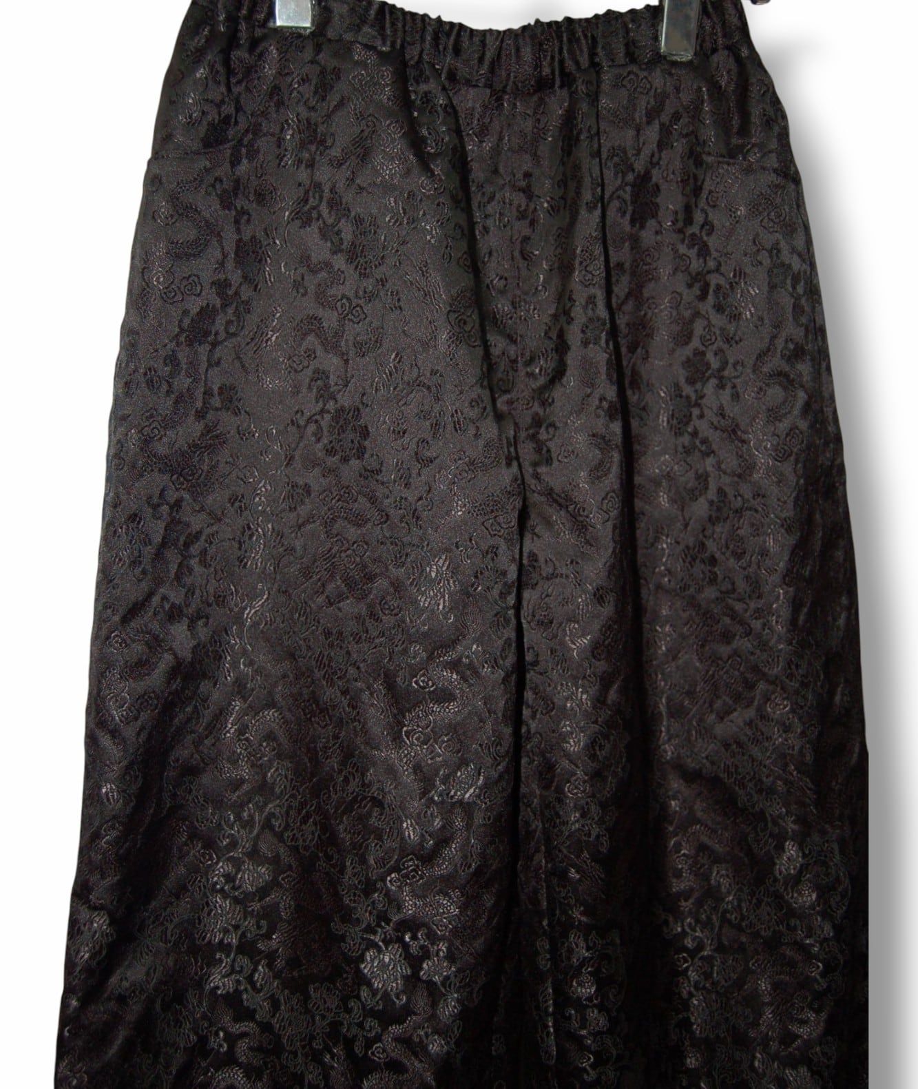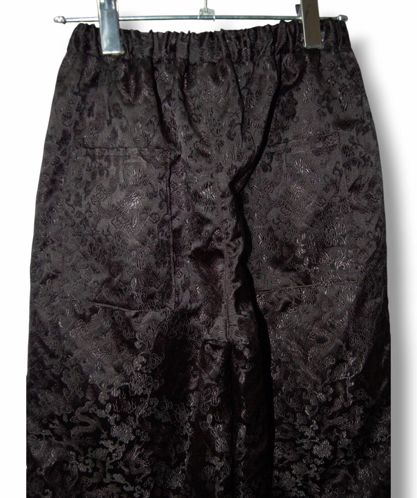 龍花柄 チャイナワイドパンツ:ブラック