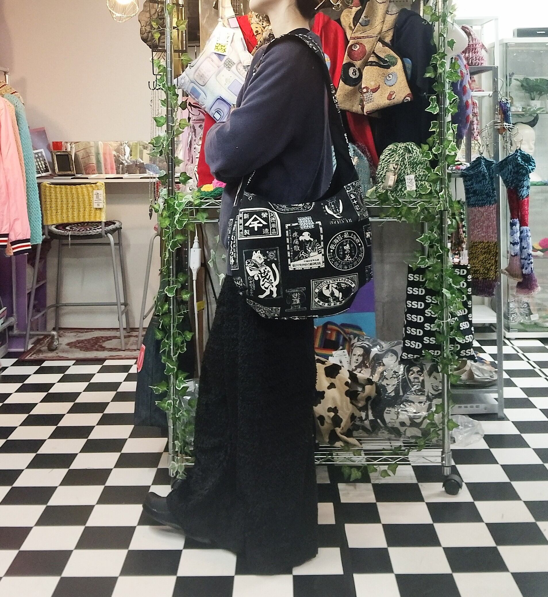 SSD和柄レトロデザイン 帆布ワンショルダーバッグ:ブラック