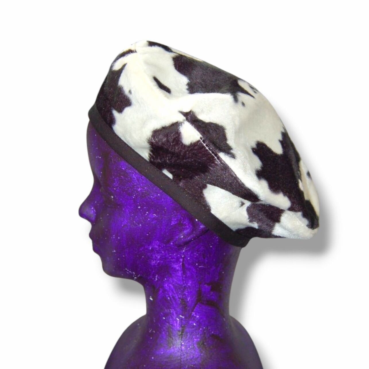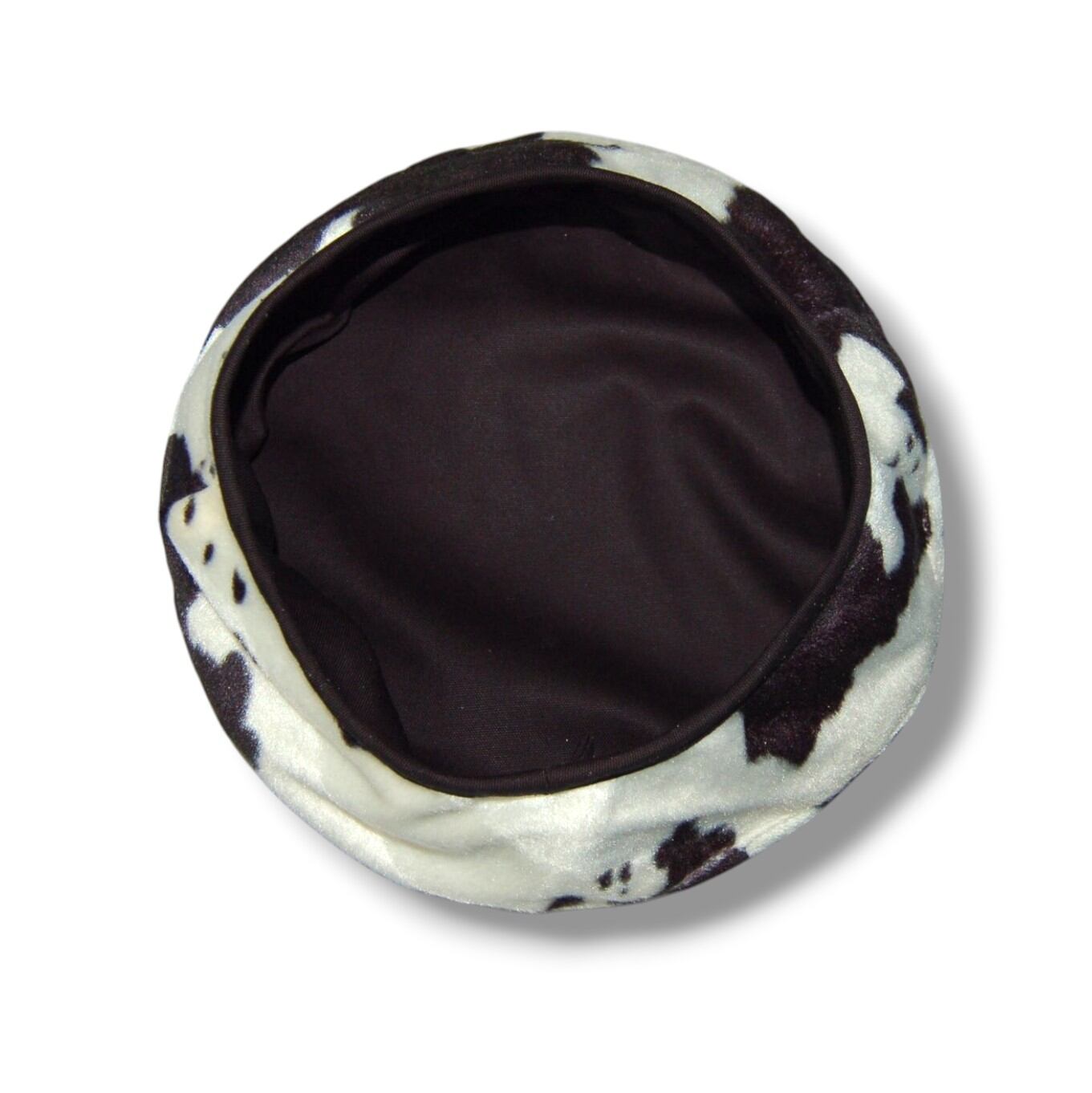 牛柄フェイクファー ベレー帽