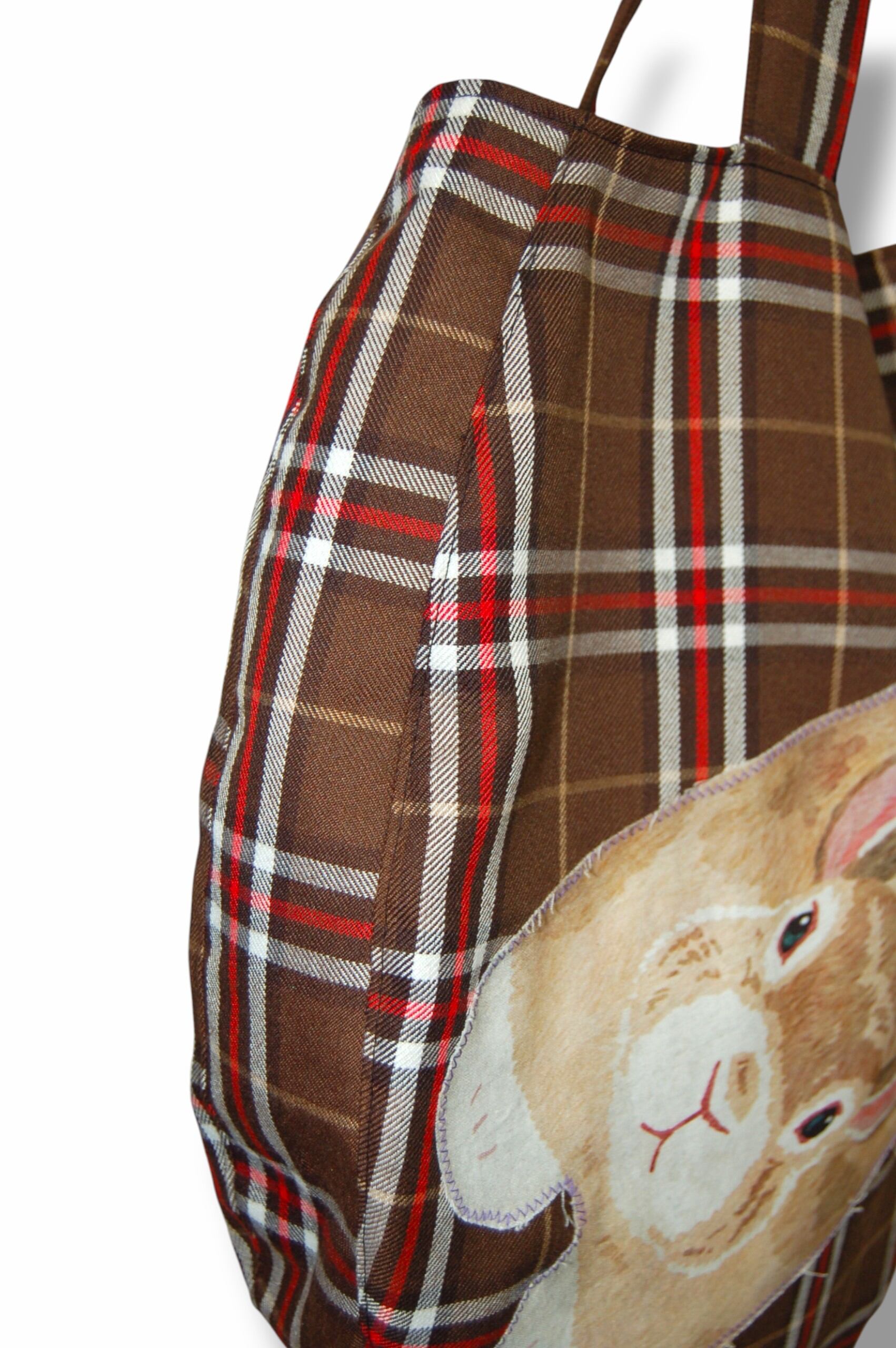 ブラウンタータンチェックチェックベースに、ウサギを合わせたユニークデザイン。