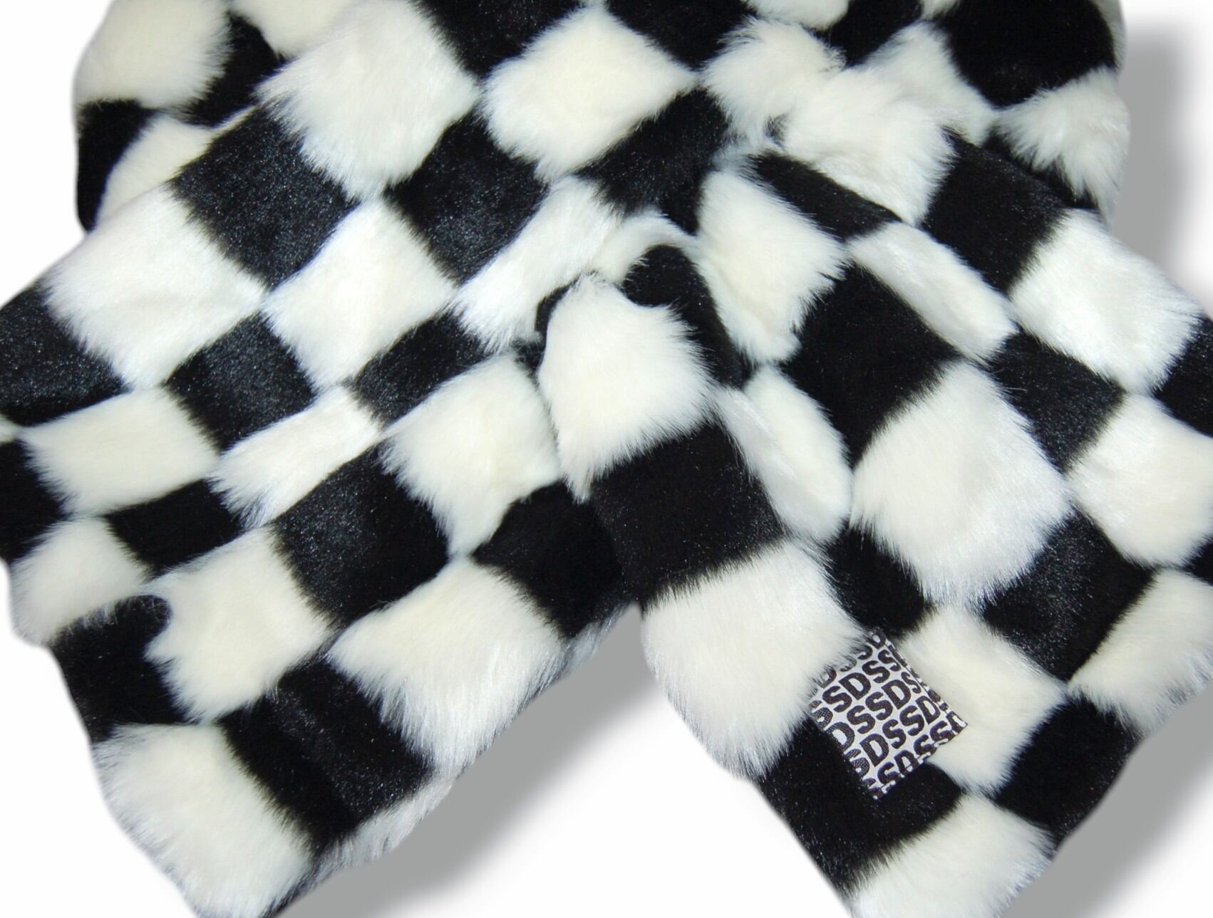 SSDチェッカーフラッグ×ブラック フェイクファーティペットマフラー。