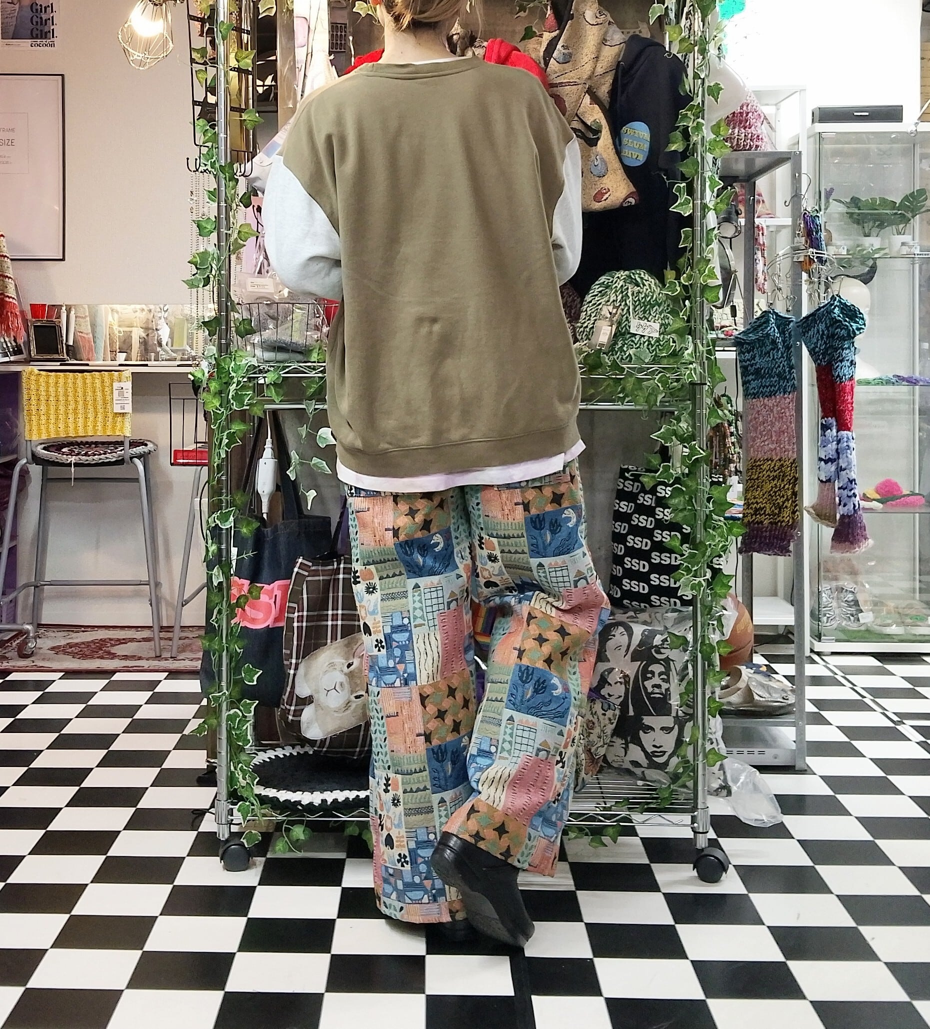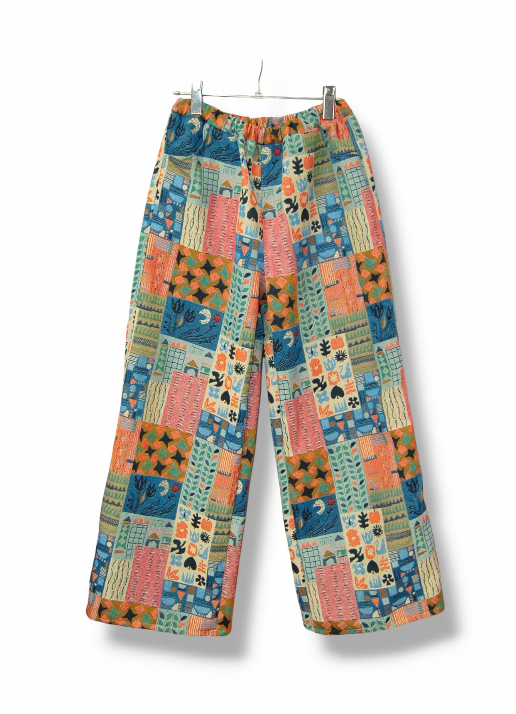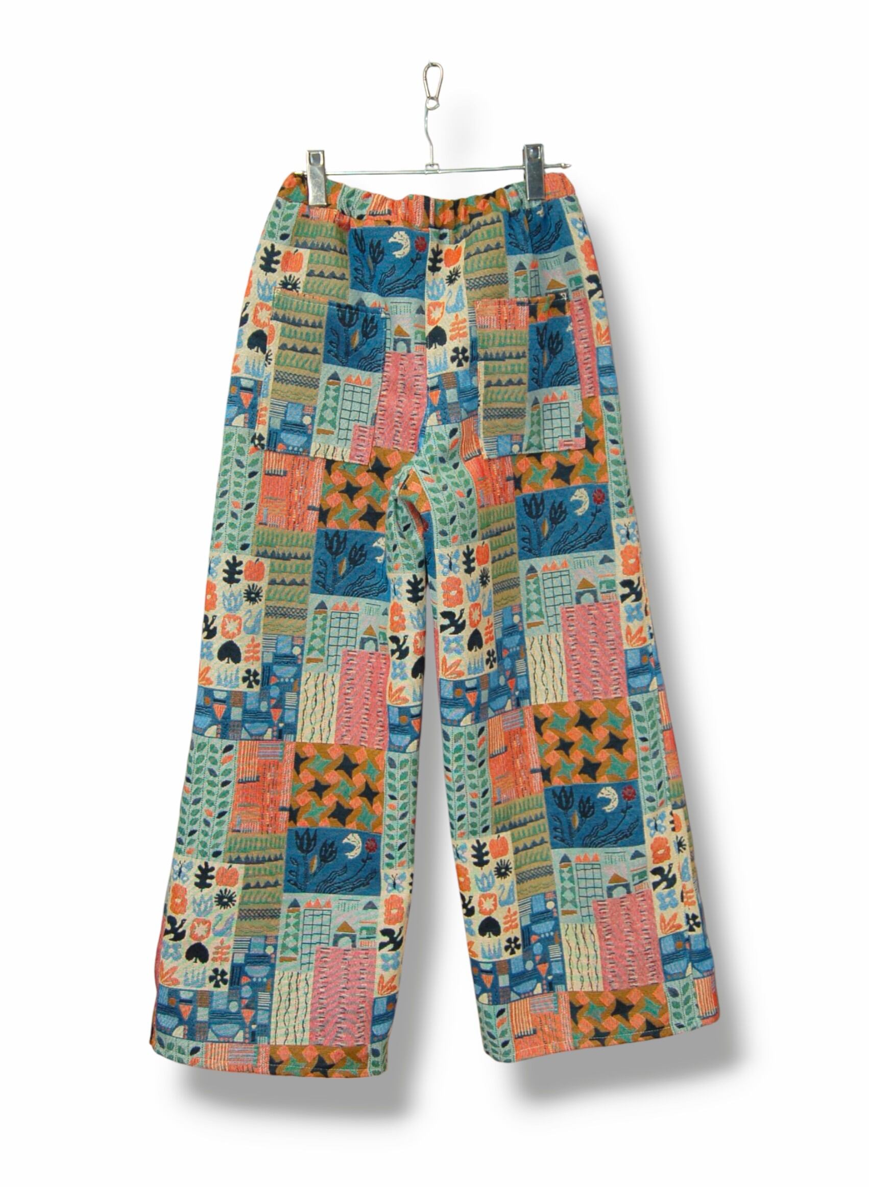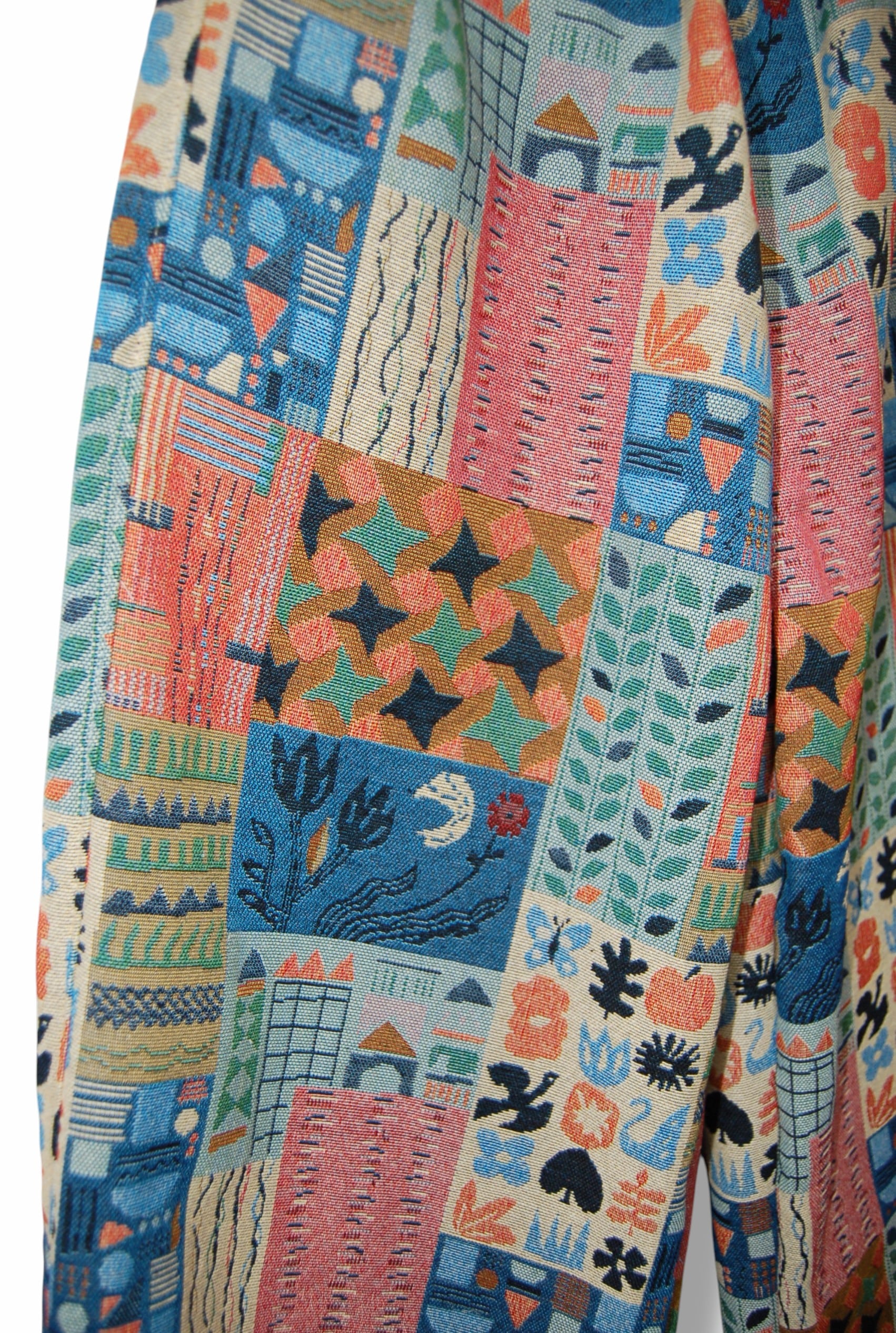 レトロパッチワークデザイン ゴブラン織 ワイドパンツ。