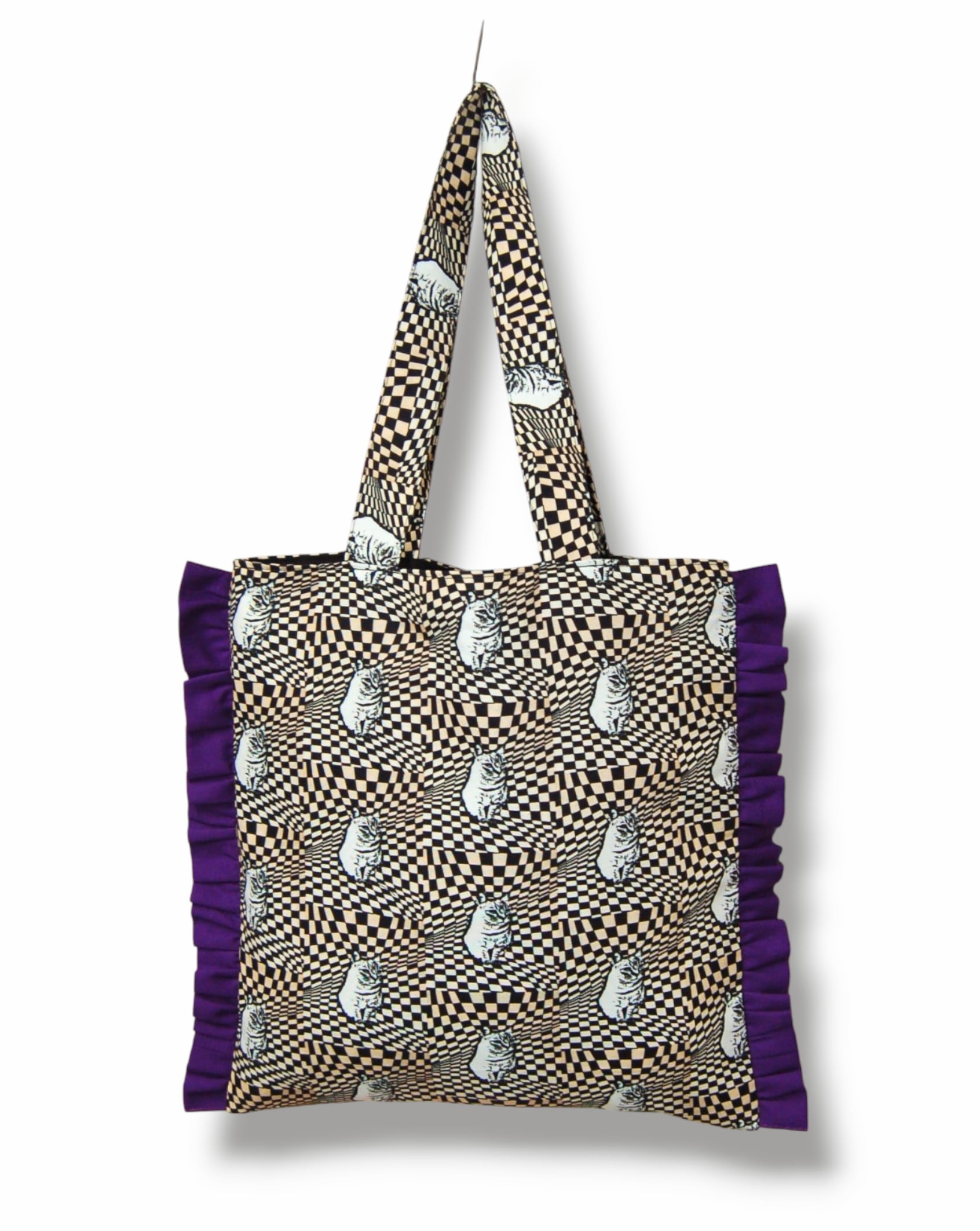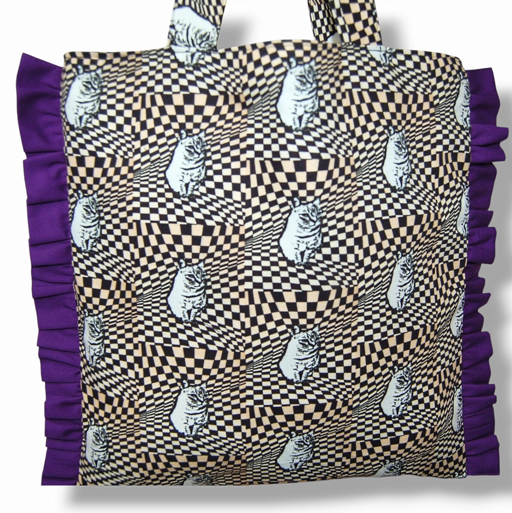 ssdオリジナルファブリックデザインフリルデザイントートバッグの大きめサイズ。