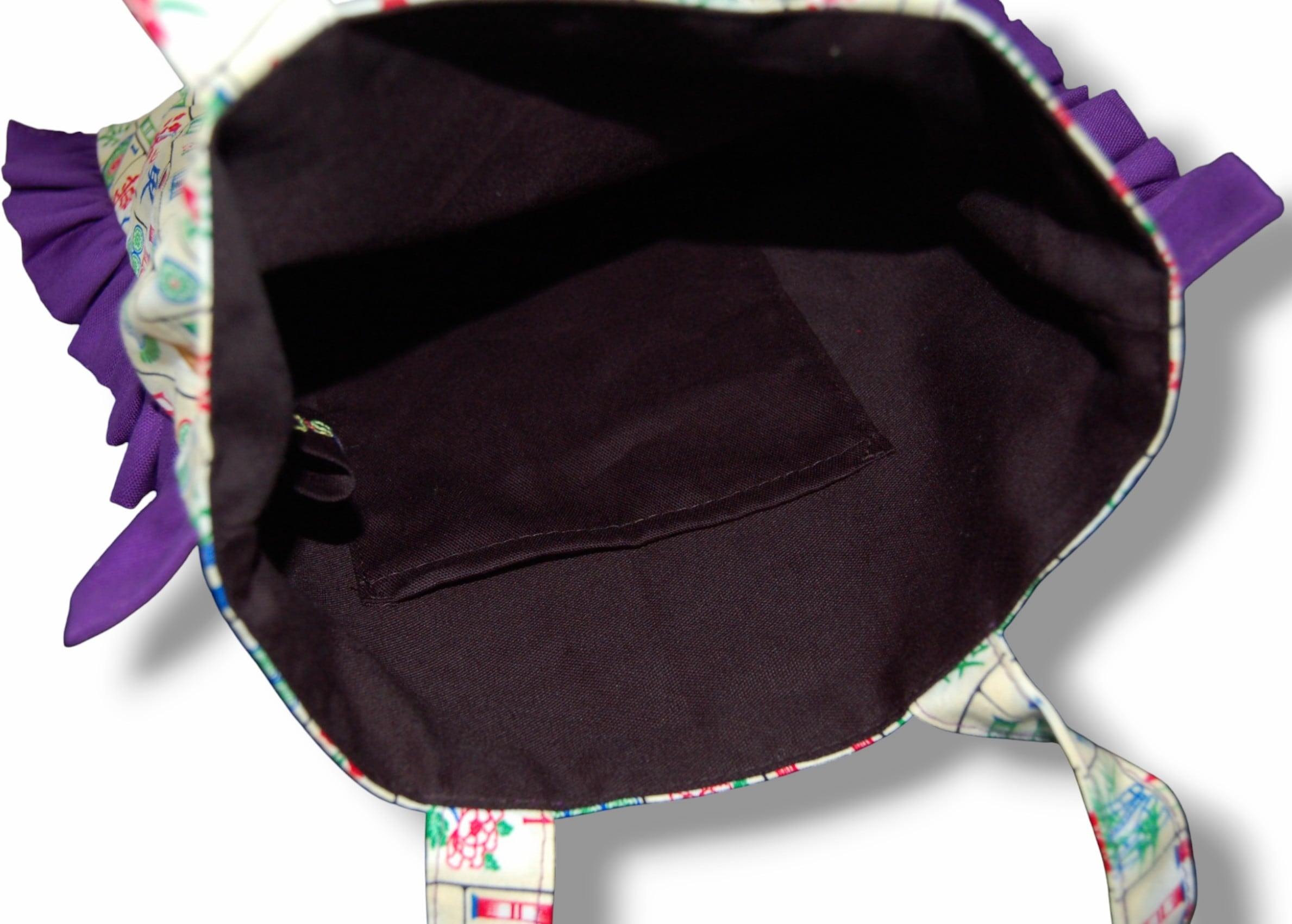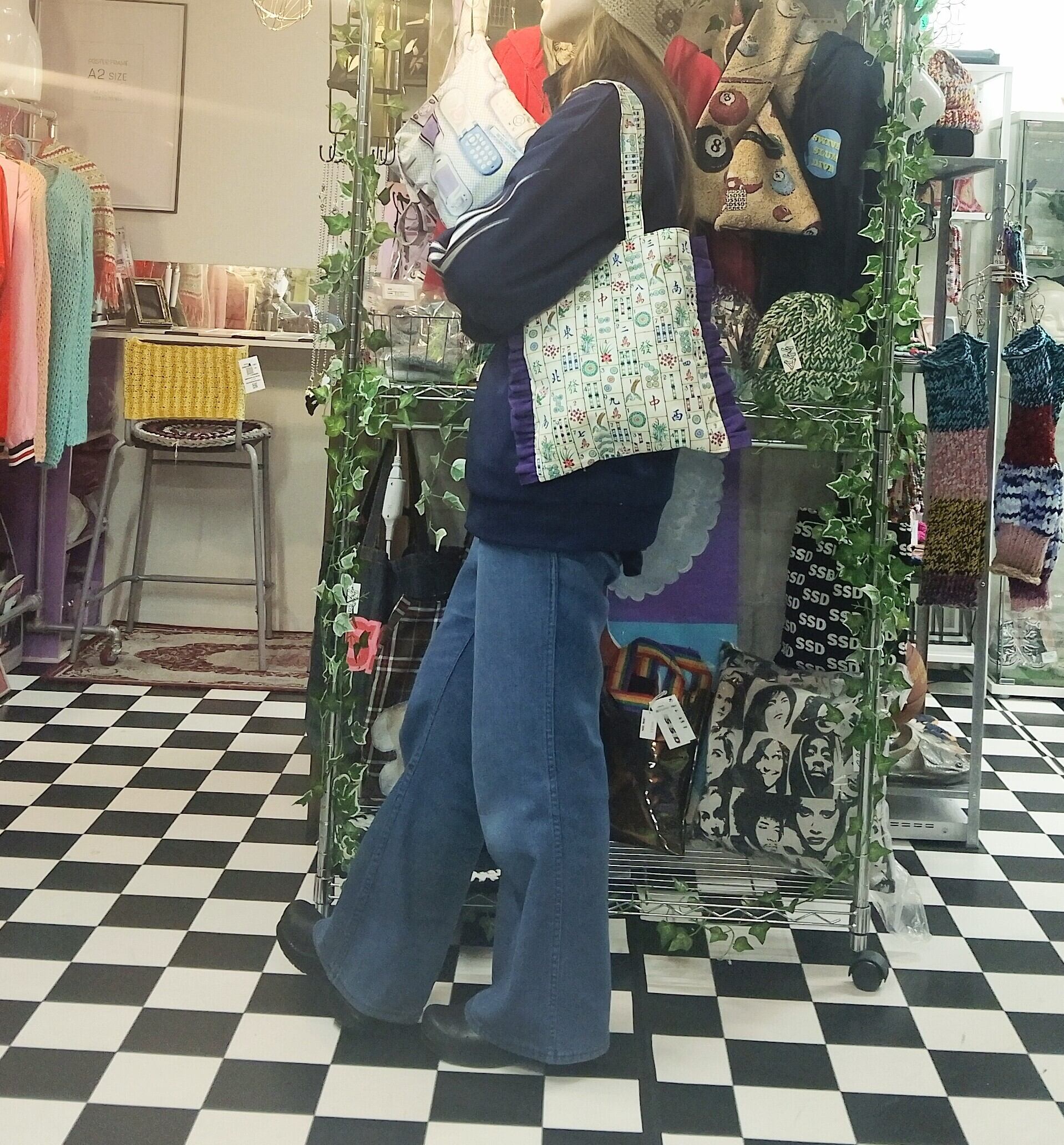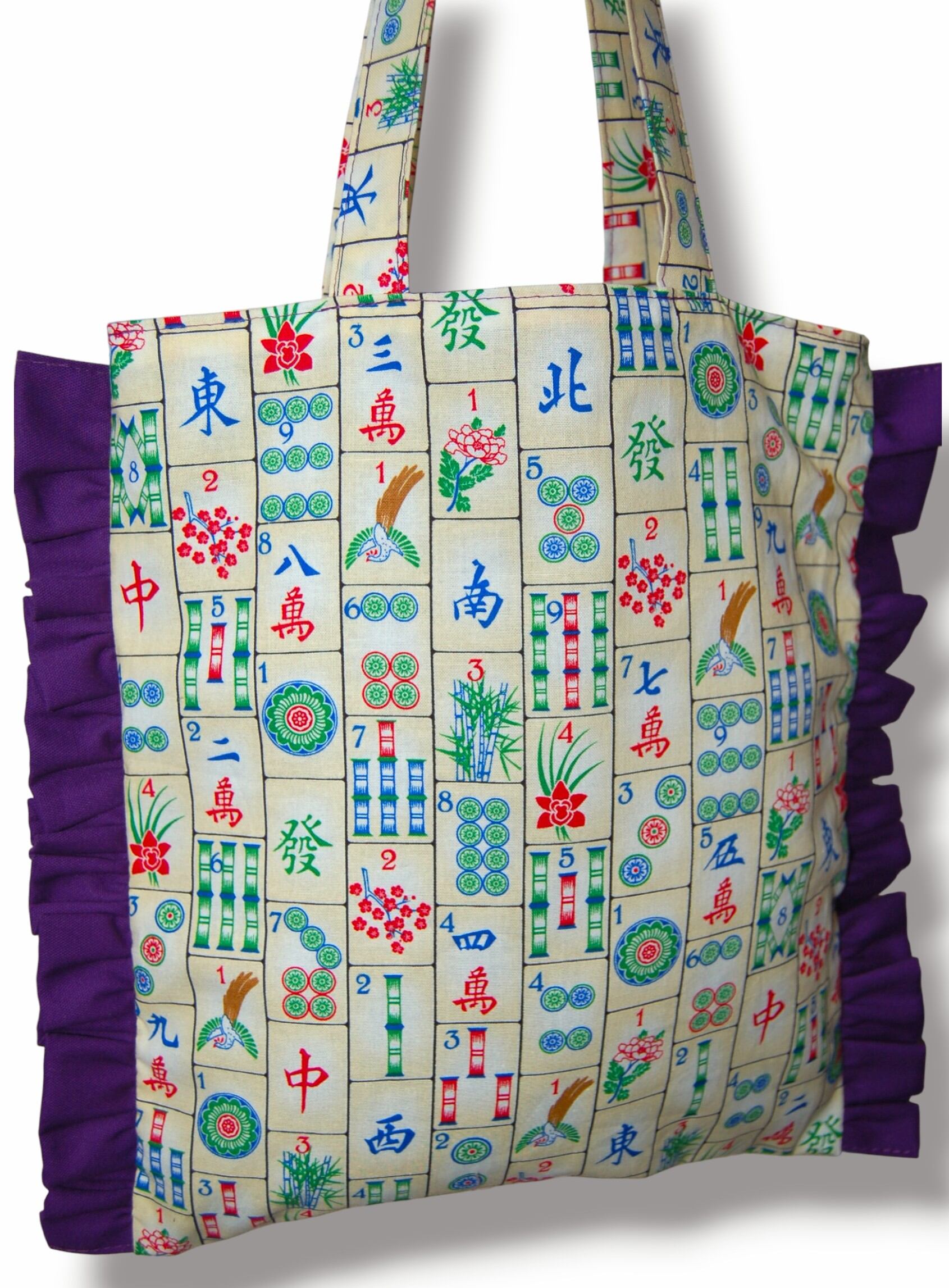 珍しい麻雀デザインを使用したフリルトートバッグ。