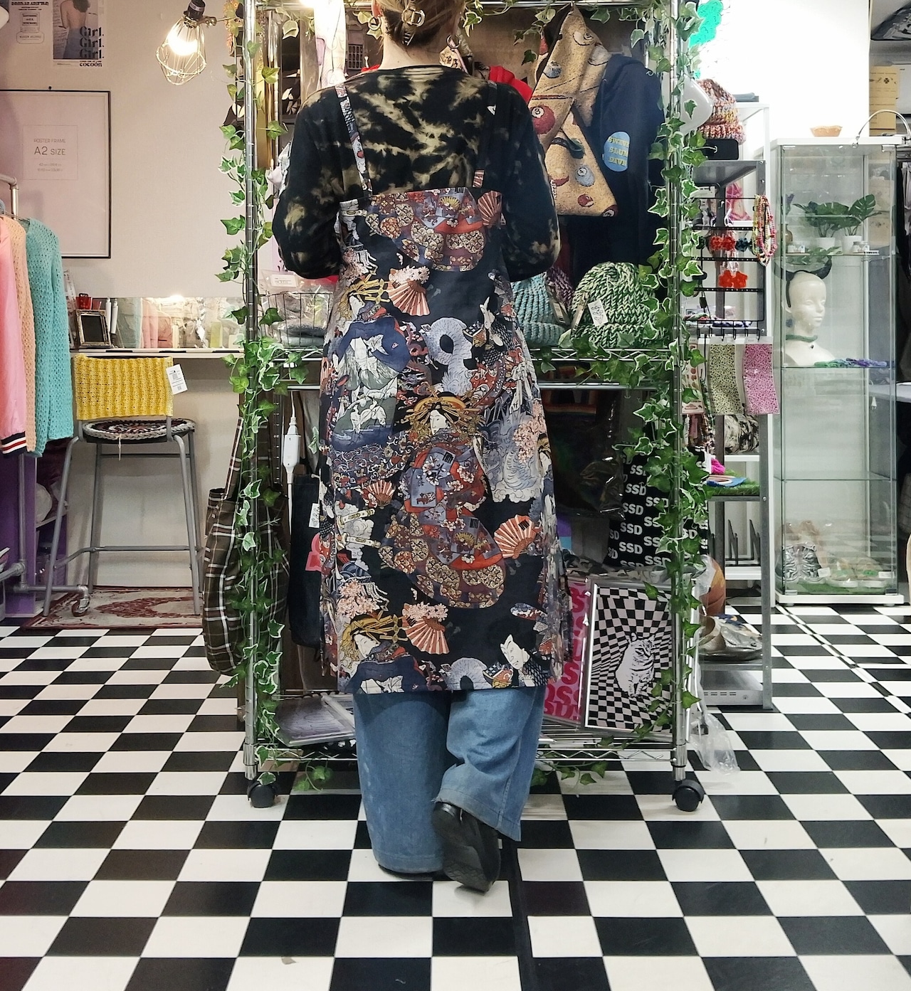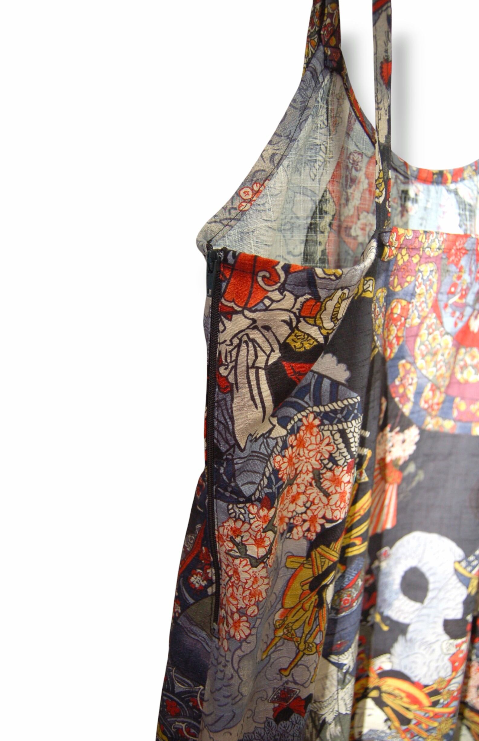 和柄浮世絵 日本画デザイン スリットキャミワンピース。
