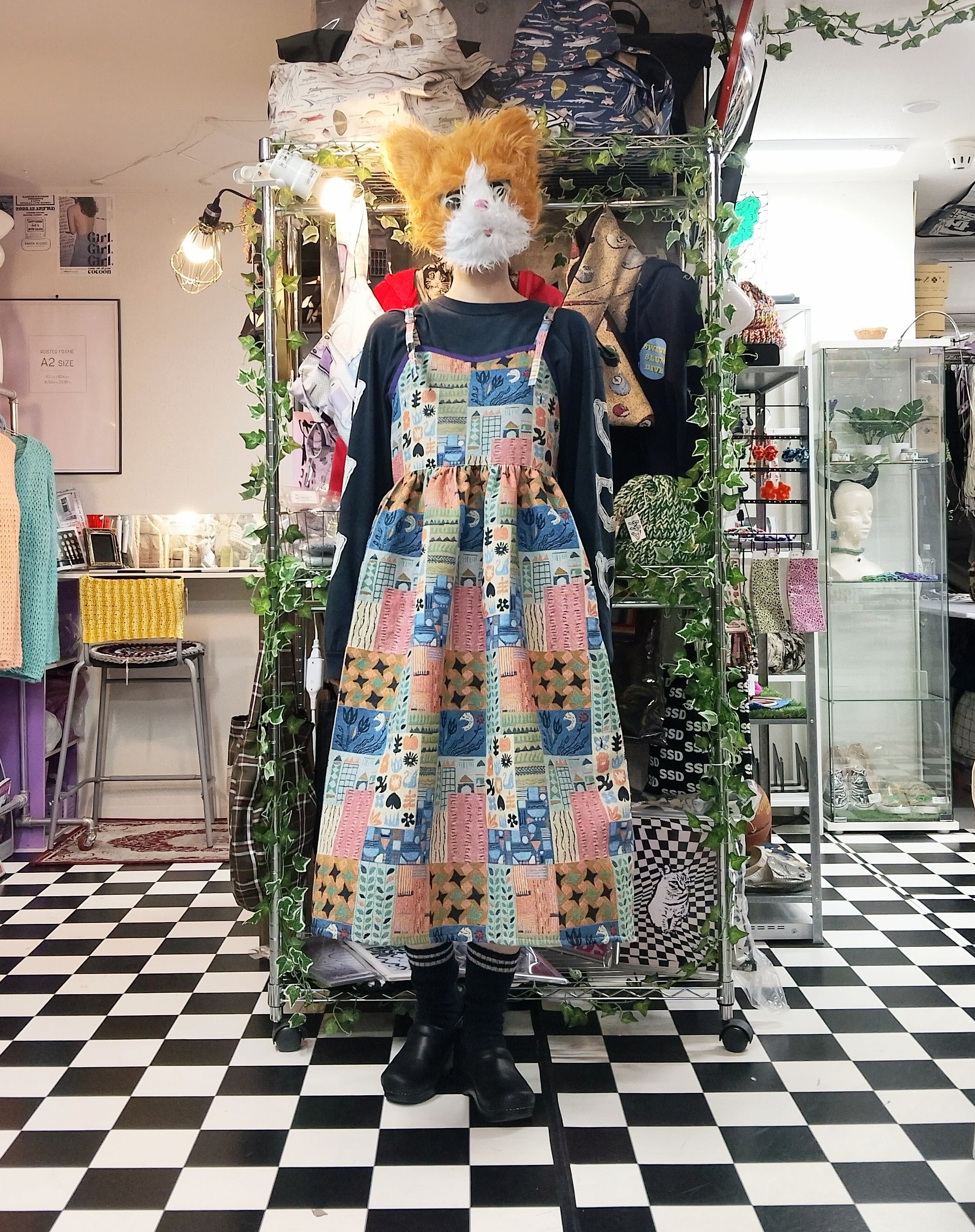 レトロパッチワークデザインがキュートで目を引く他にない一点。