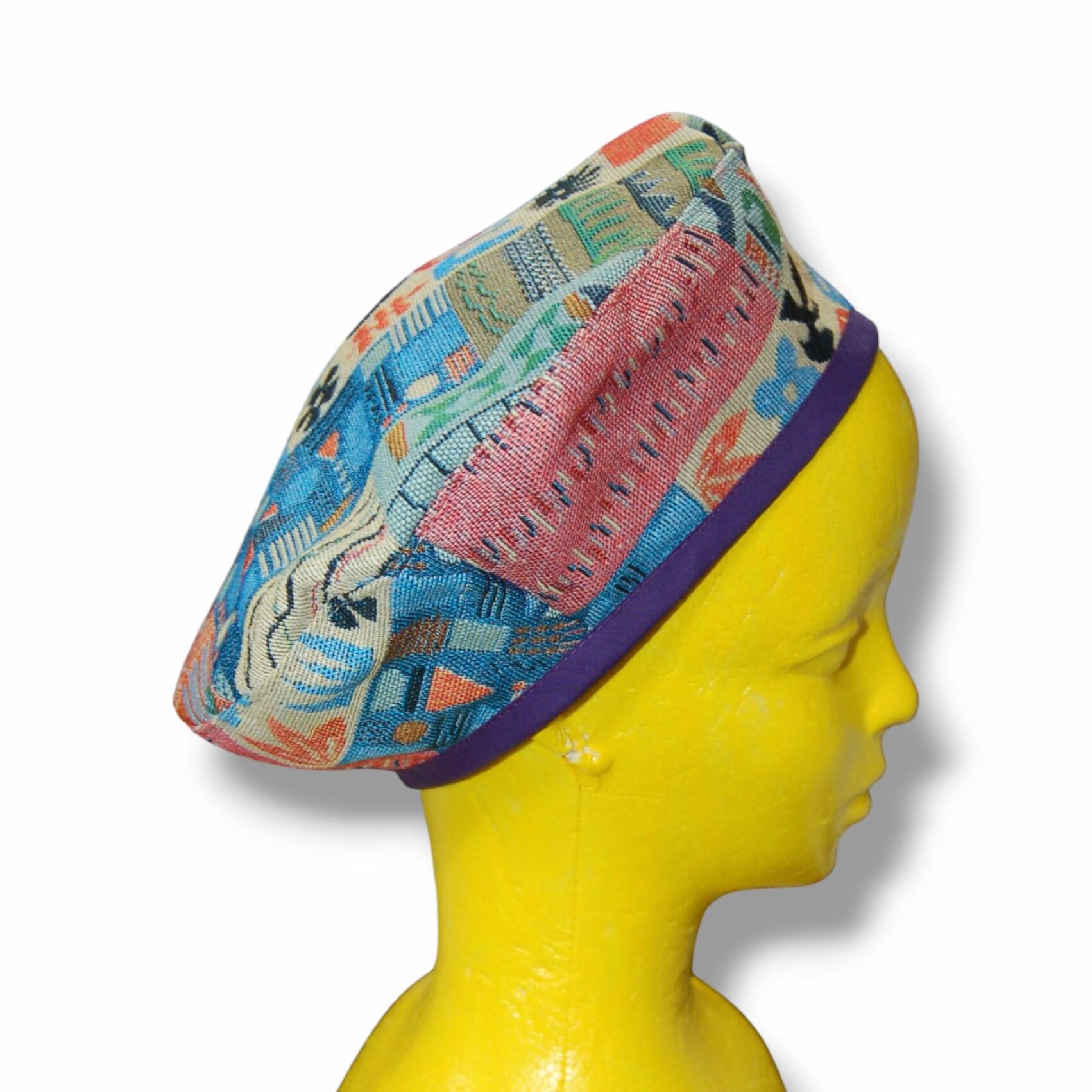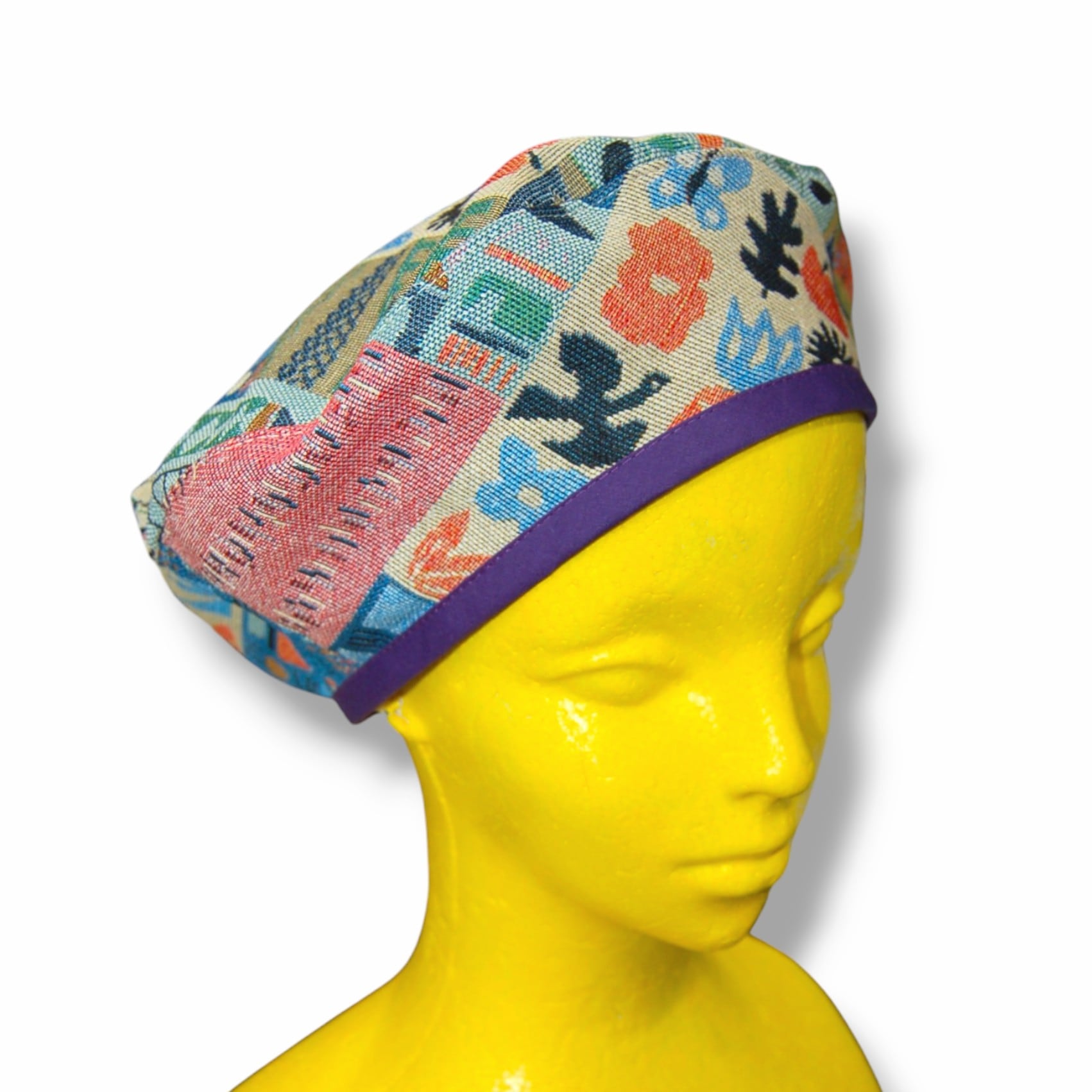 レトロパッチワークデザインゴブラン織ベレー帽。