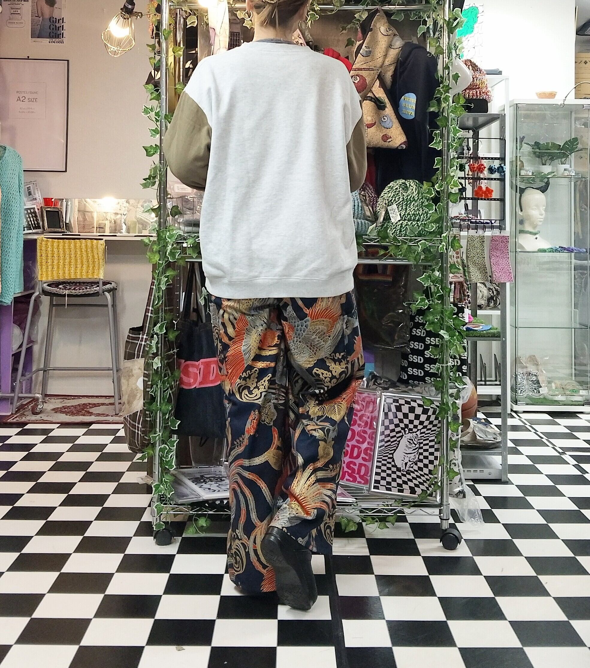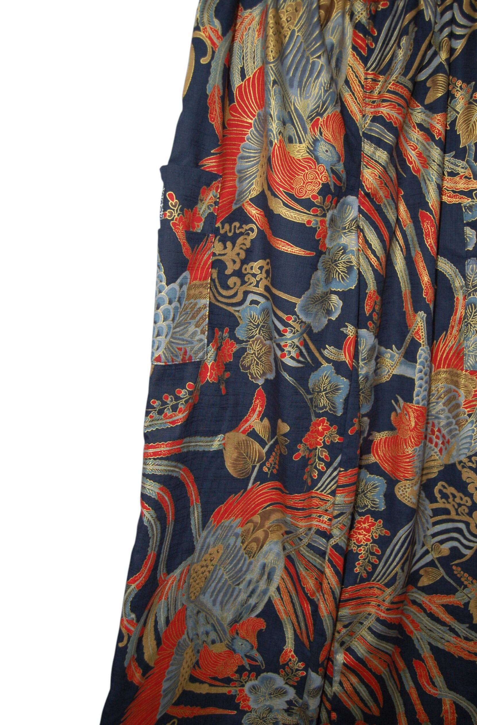 鳳凰和柄 コットンワイドパンツ。