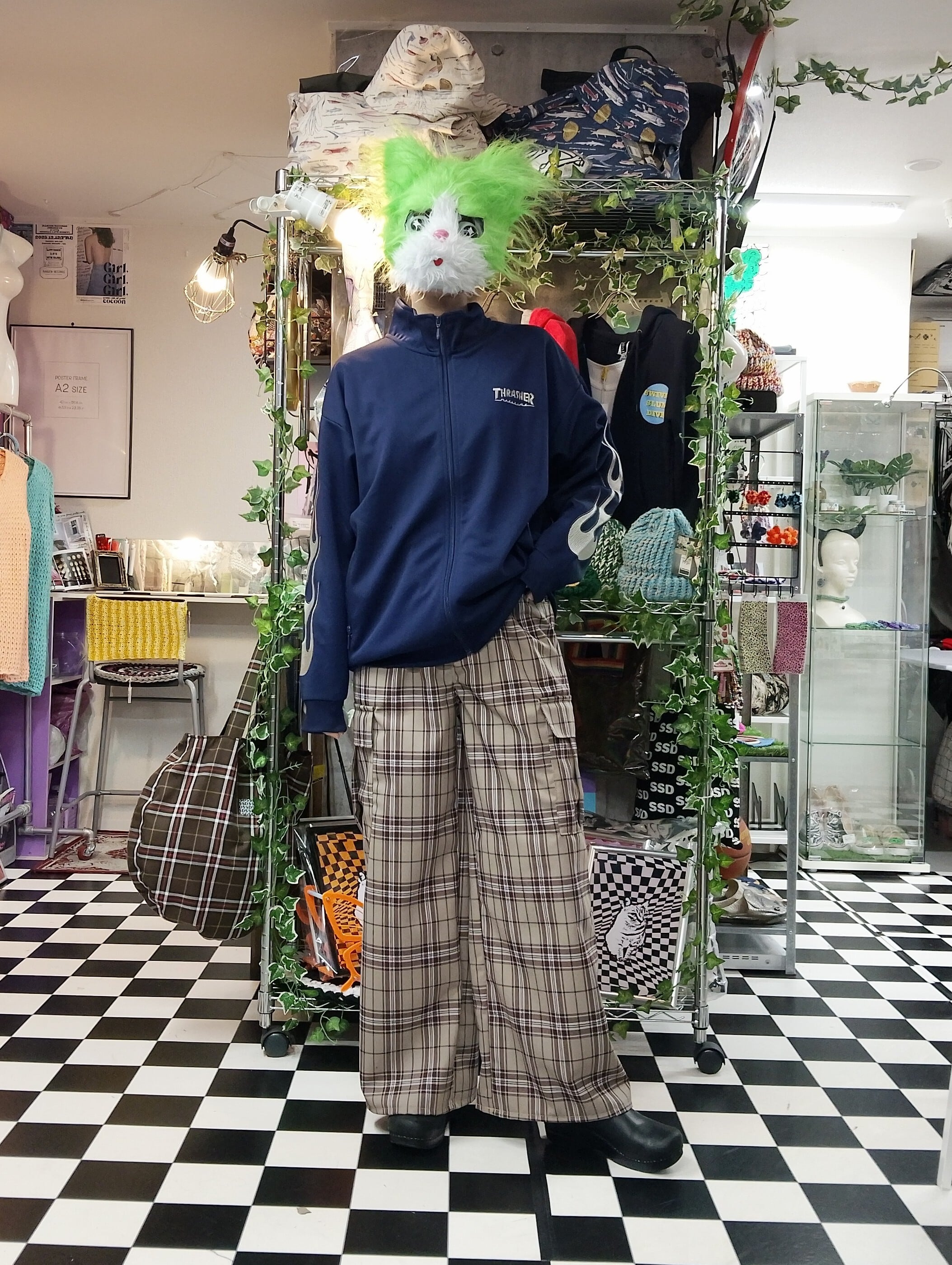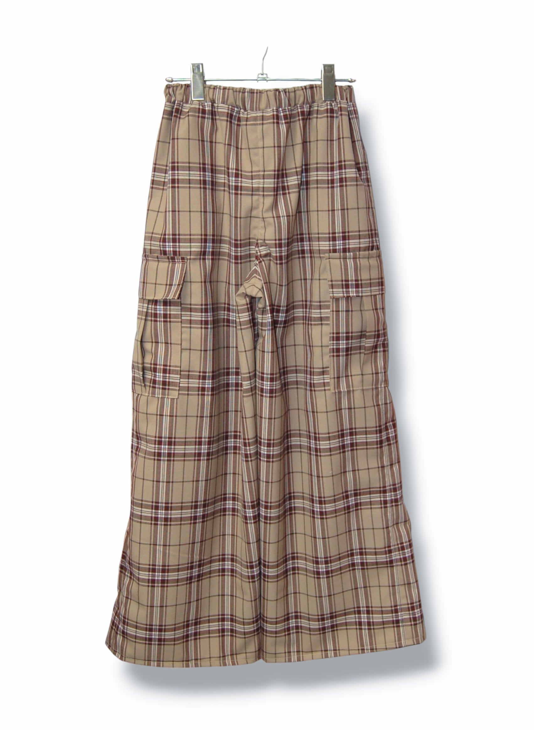 タータンチェック カーゴワイドパンツ:モカベージュ