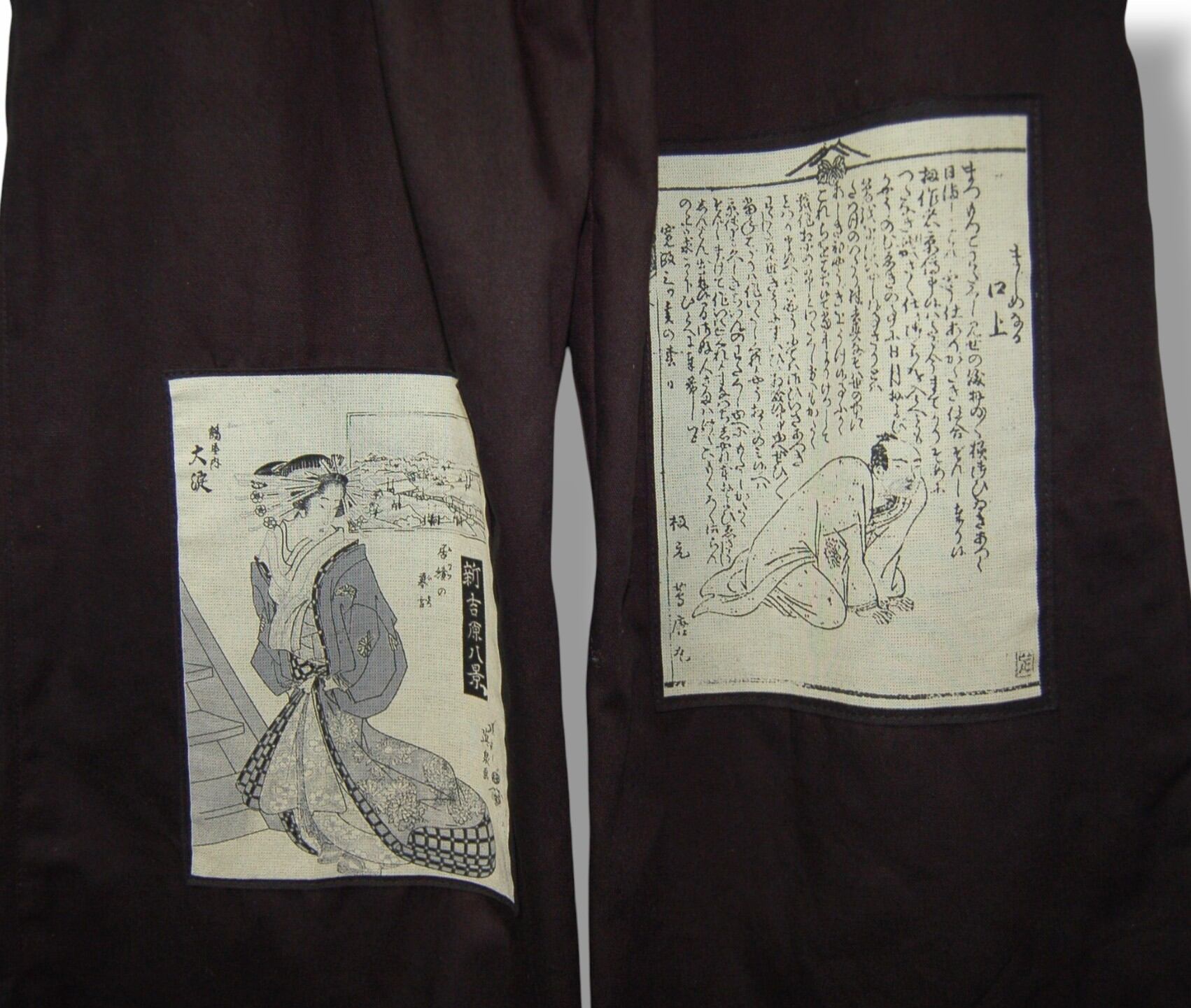 前後に浮世絵パッチをバランス良く配置したインパクトのあるデザインパンツ。