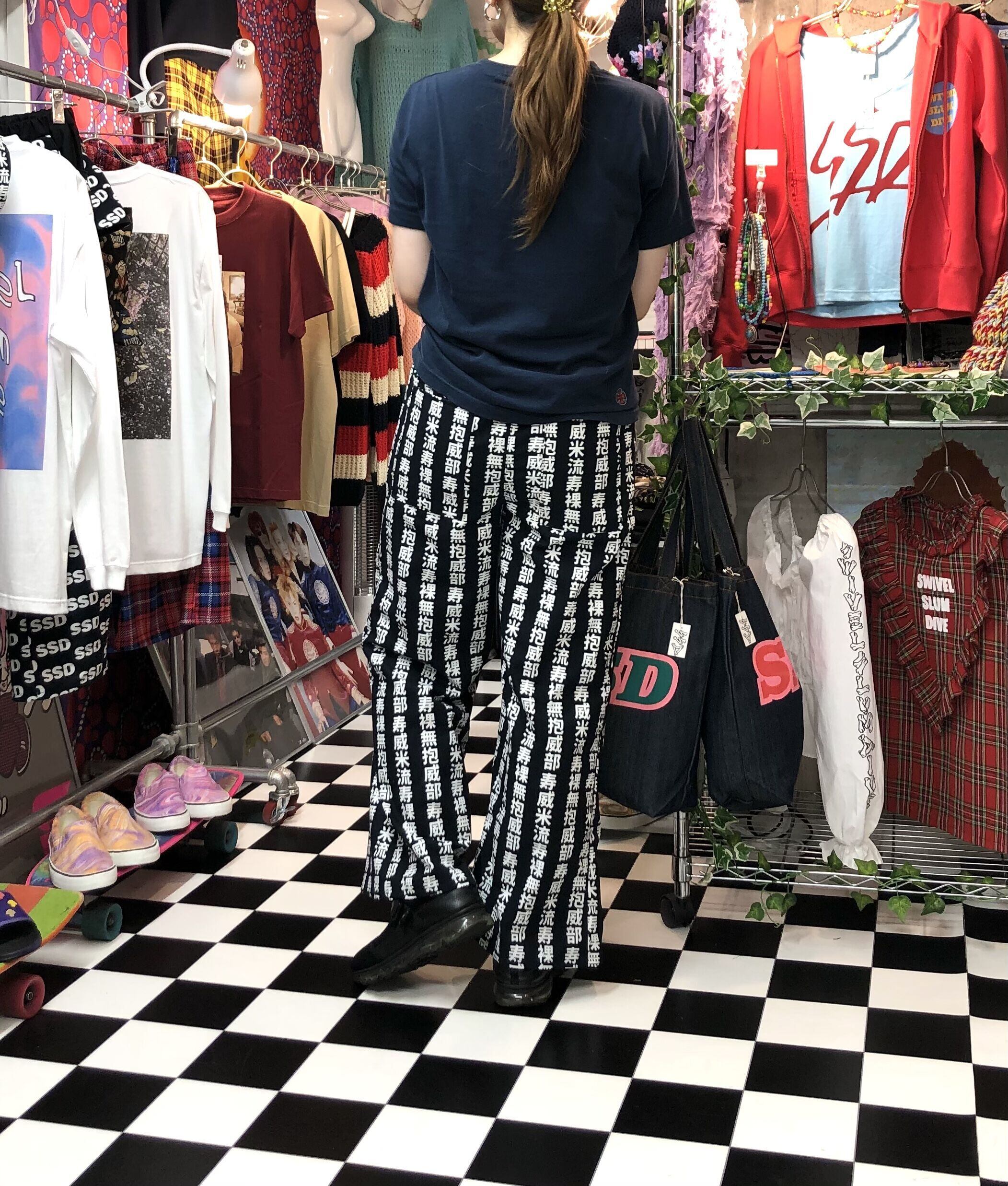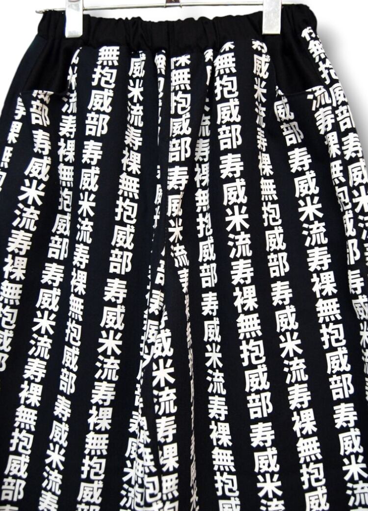 swivelslumdive 世にも奇妙な漢字デザインのオリジナルファブリック コットンワイドパンツ。