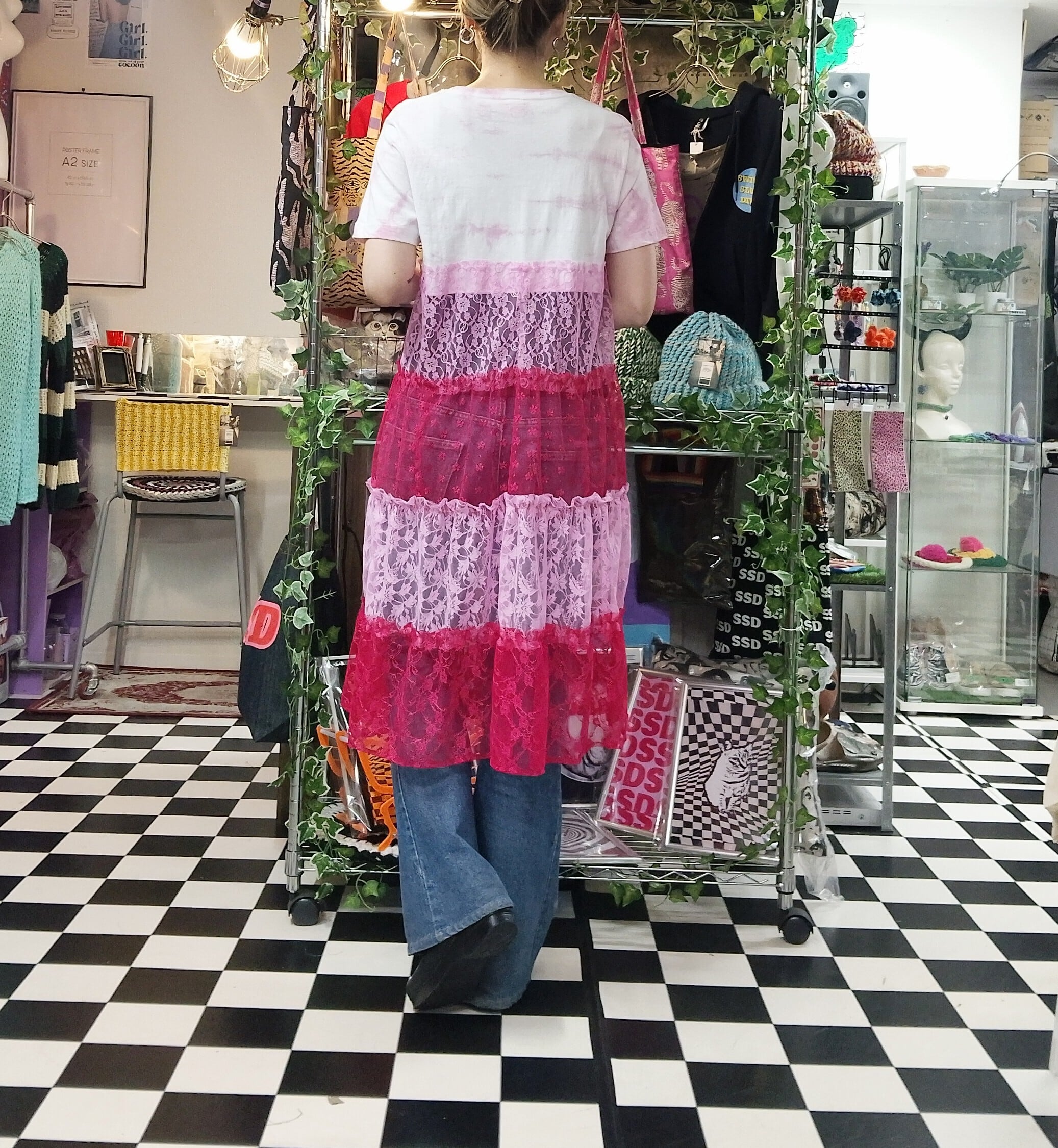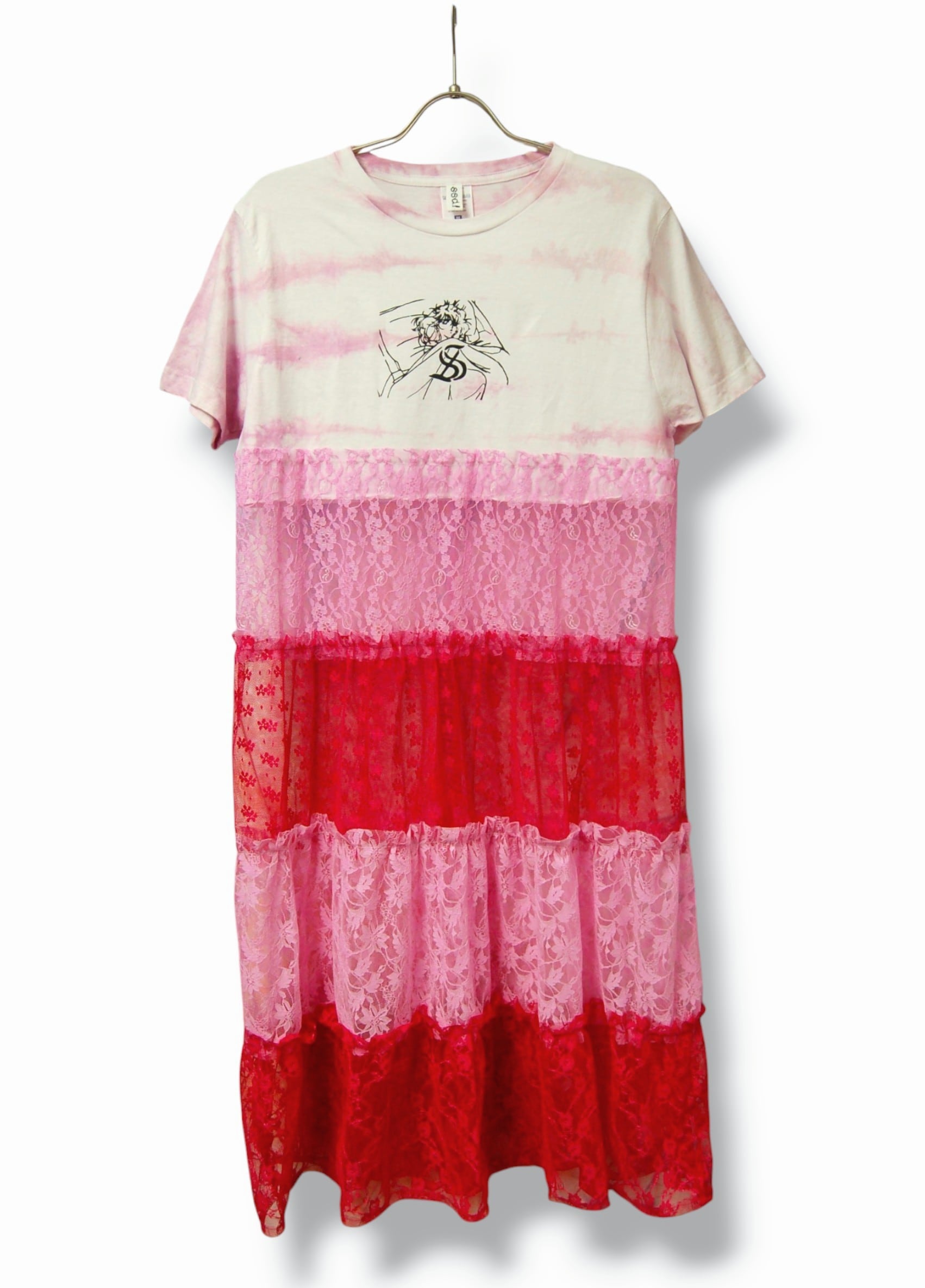 SSD 80sbedgirlタイダイデザインTにチュールレース地を合わせたオリジナルミックス切り替えワンピース。