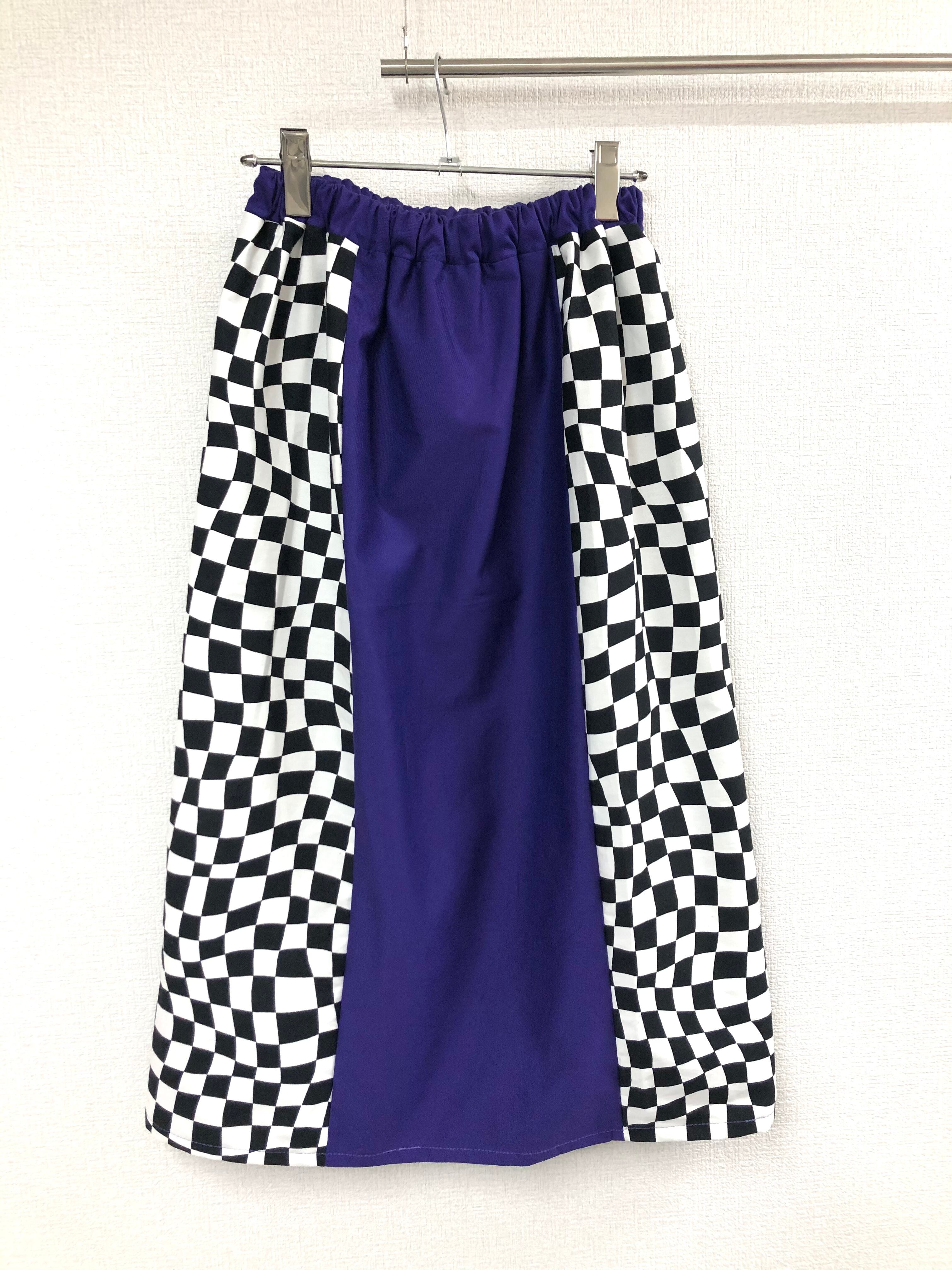 ウェーブチェッカー生地とパープル生地をミックスしたロングスリットスカート。