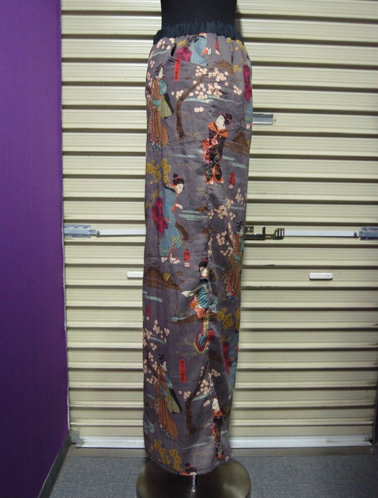 町娘 浮世絵 和柄 コットン 裏地付きワイドパンツ:薄紫