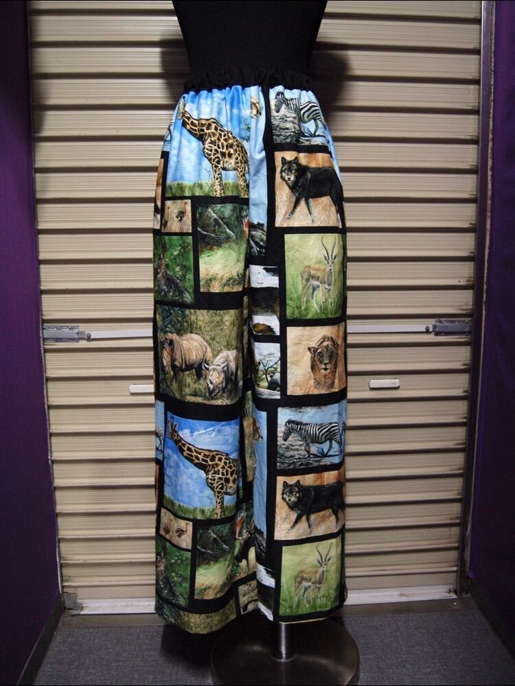 アニマルピクチャーデザイン 裏地付きコットン ワイドパンツ。