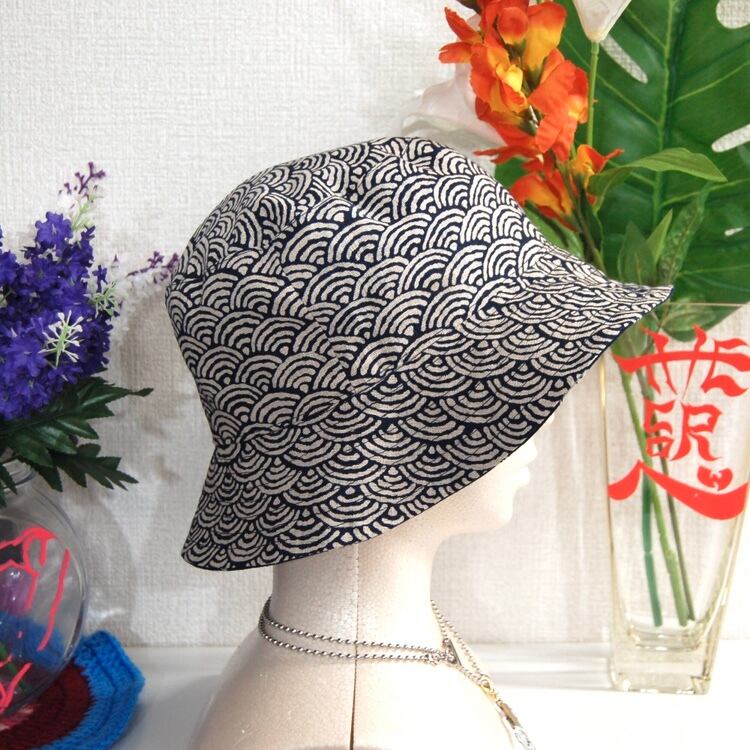 青海波×魚 和柄デザインのリバーシブルコットンハット。