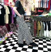 モノトーン 花柄 フロントジッパータックパンツ:L