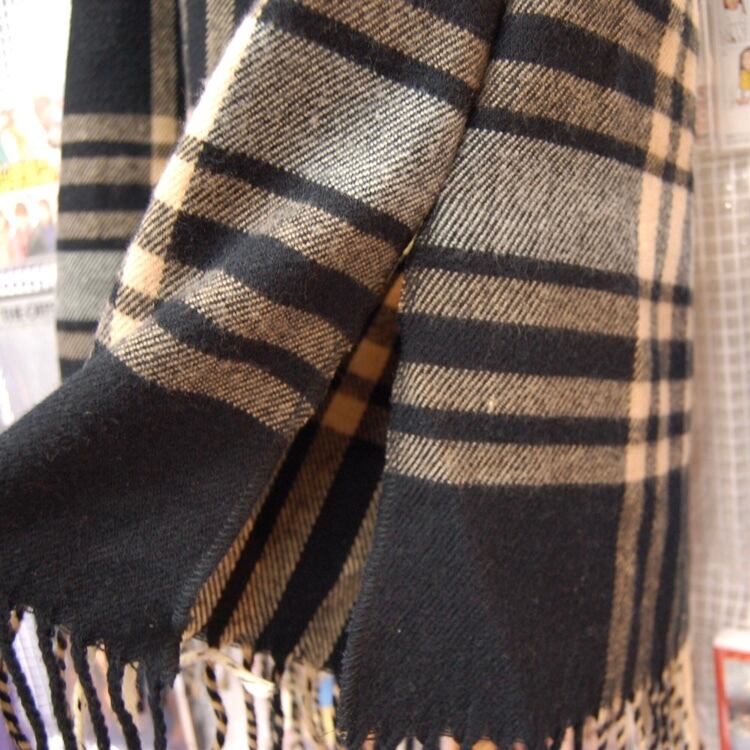 マフラーリメイク タータンチェック スリット フリンジロングスカート。