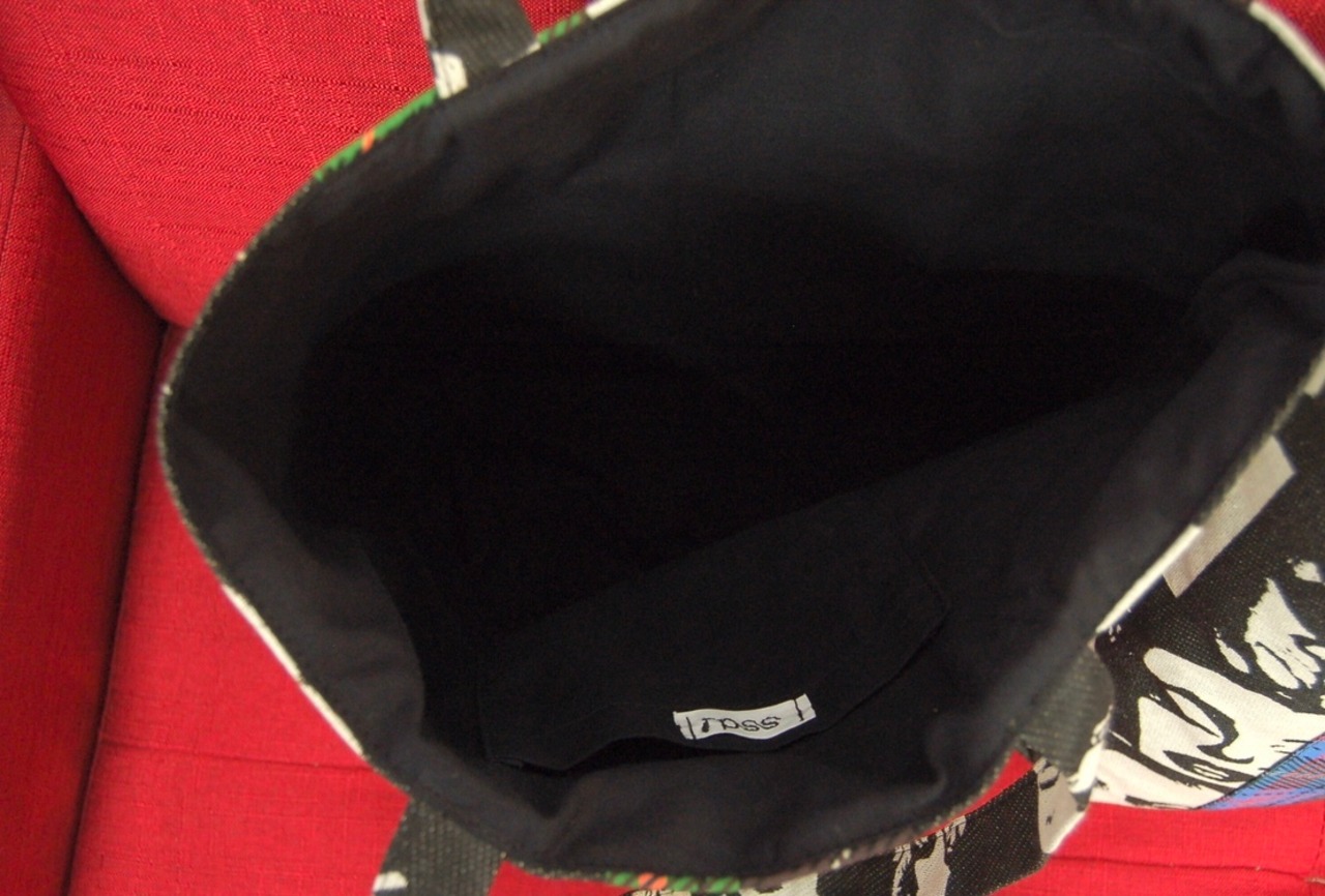 ゴブラン織海外スターデザインとタータンチェックミックスが相性の良いオリジナルトートバッグ。