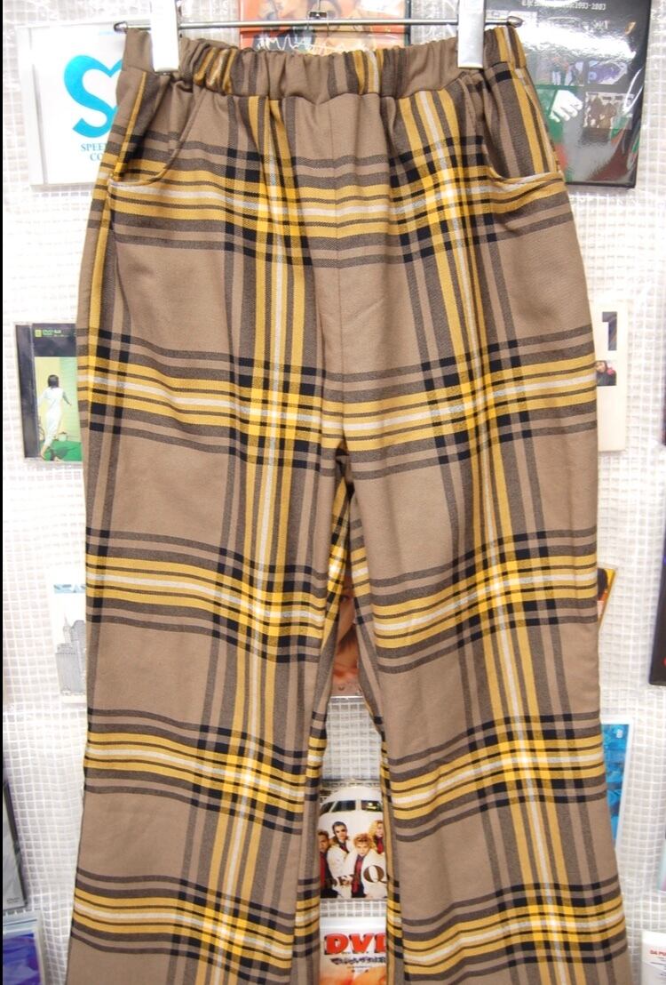 裏起毛タータンチェック フレアパンツ:ベージュ×イエロー