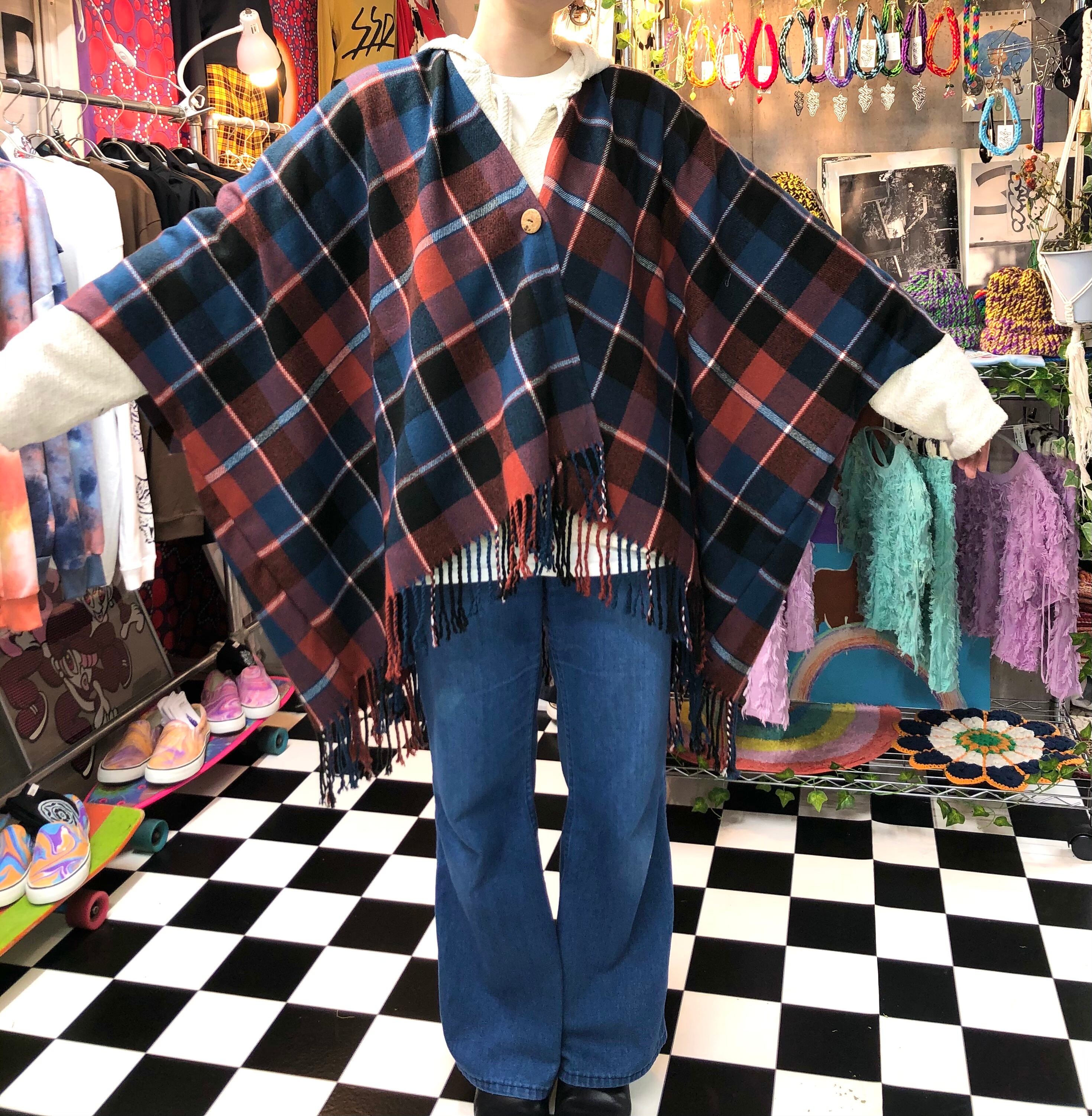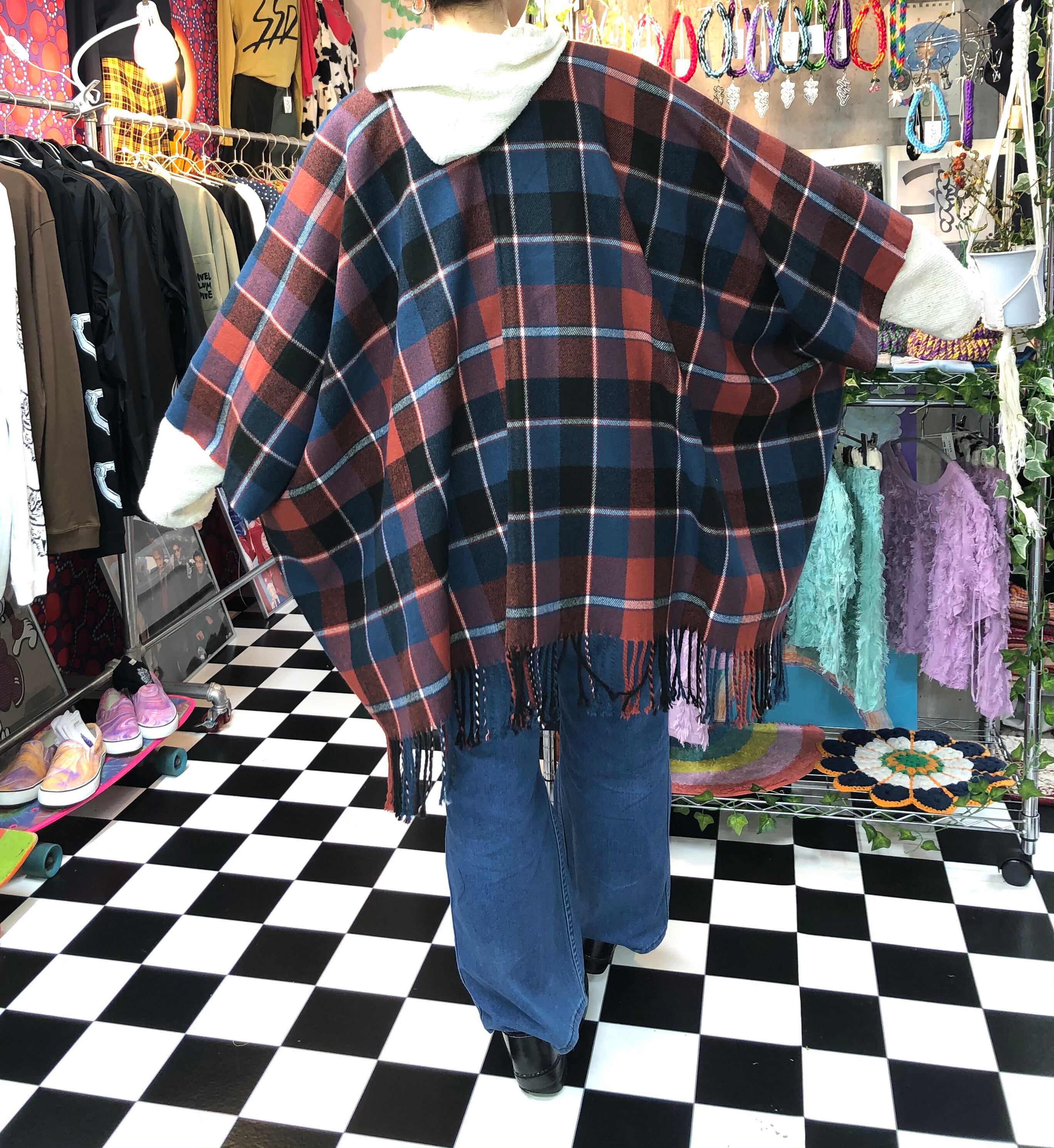 リメイク タータンチェック ポンチョ ガウン