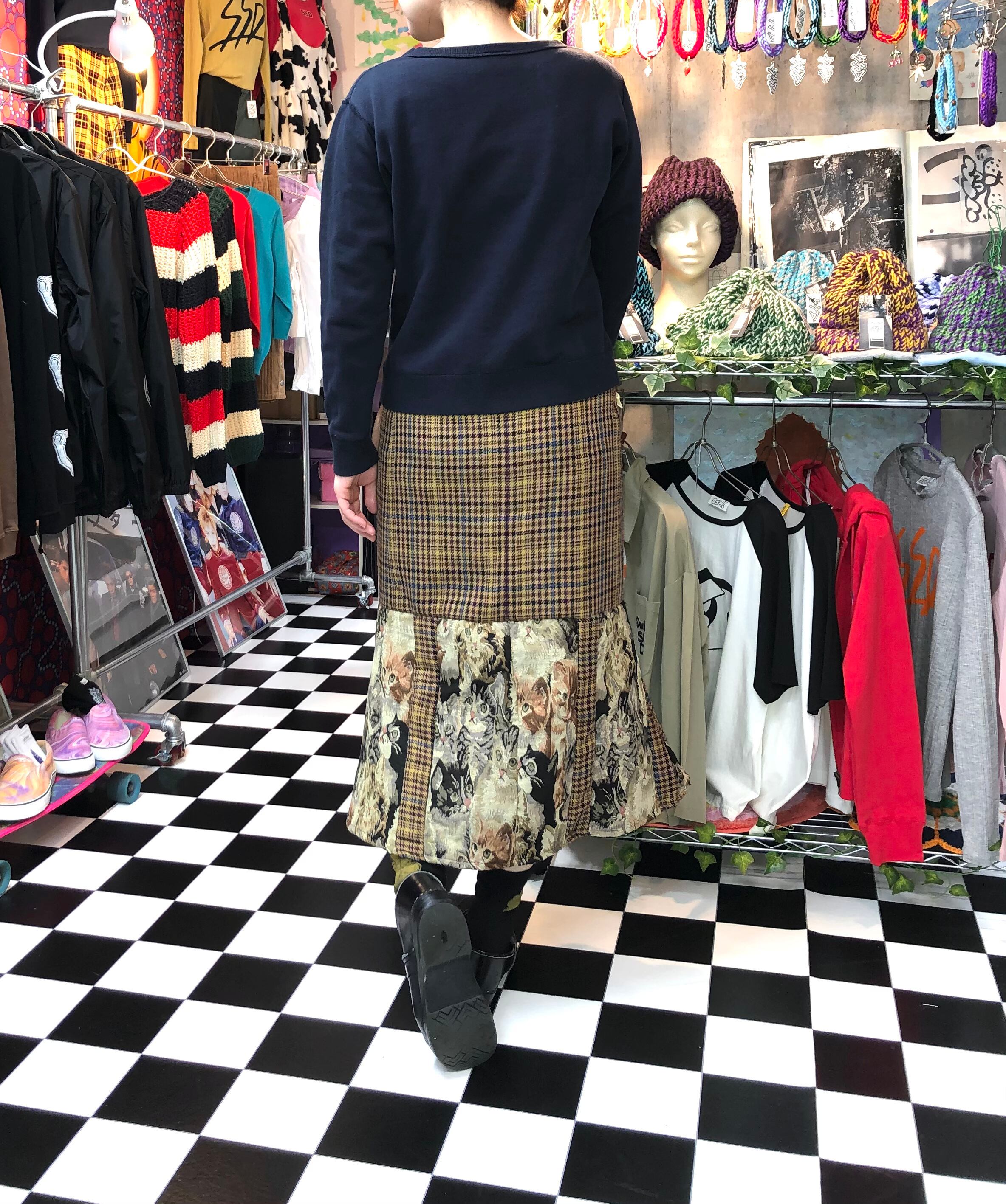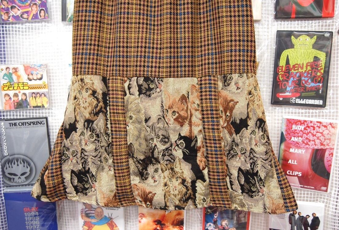 リメイク 千鳥格子チェック×猫柄 タイトフレアロングスカート