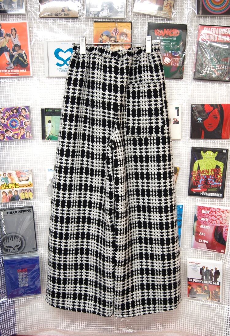 ウール チェック 裏地付きワイドパンツ