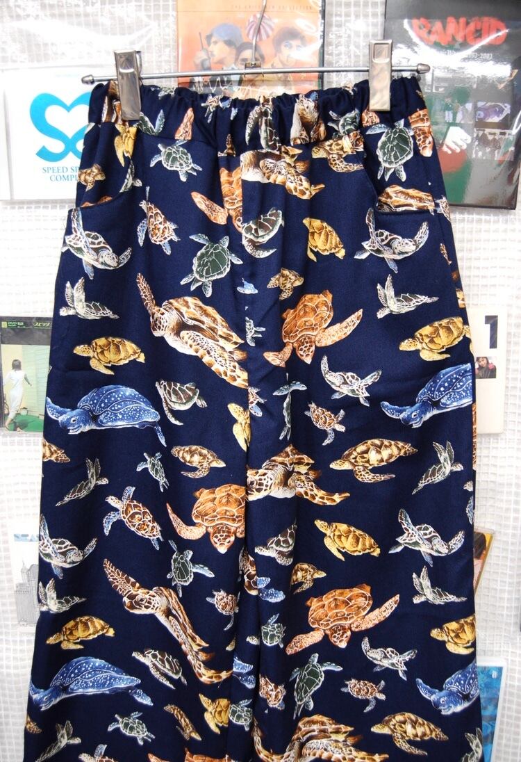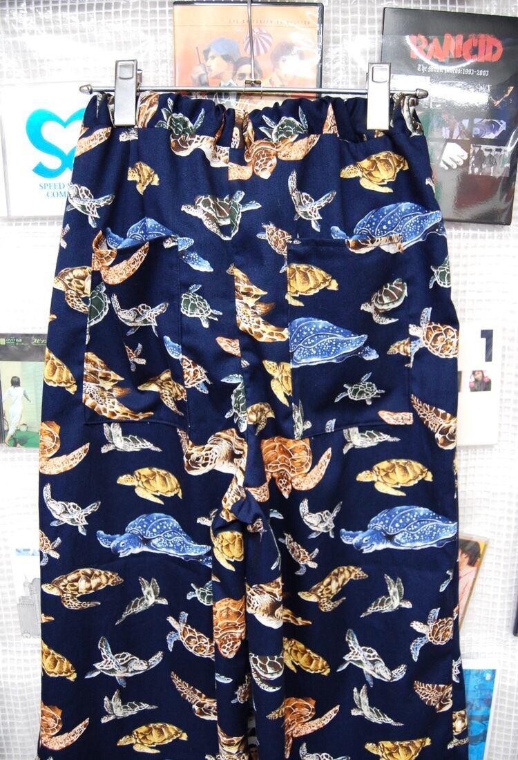 ウミガメ 総柄 コットンワイドパンツ:紺