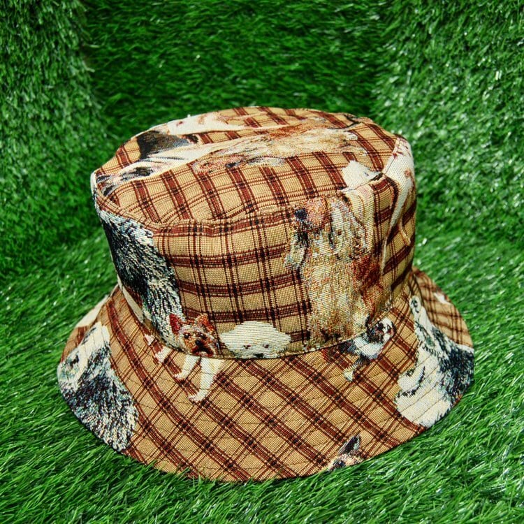 犬柄チェック ゴブラン織 ハット:オランダ製生地