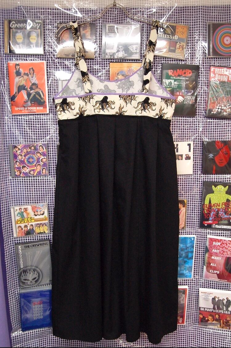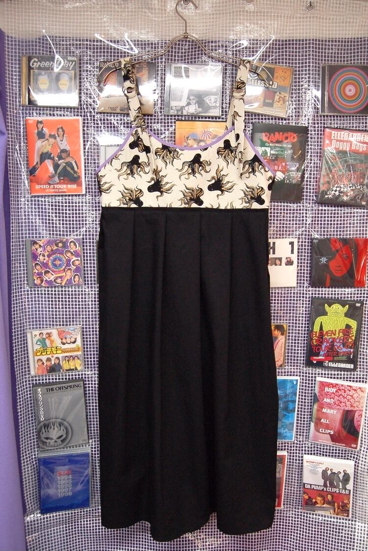 オクトパスデザイン生地とオックスブラック フレアロングワンピース。