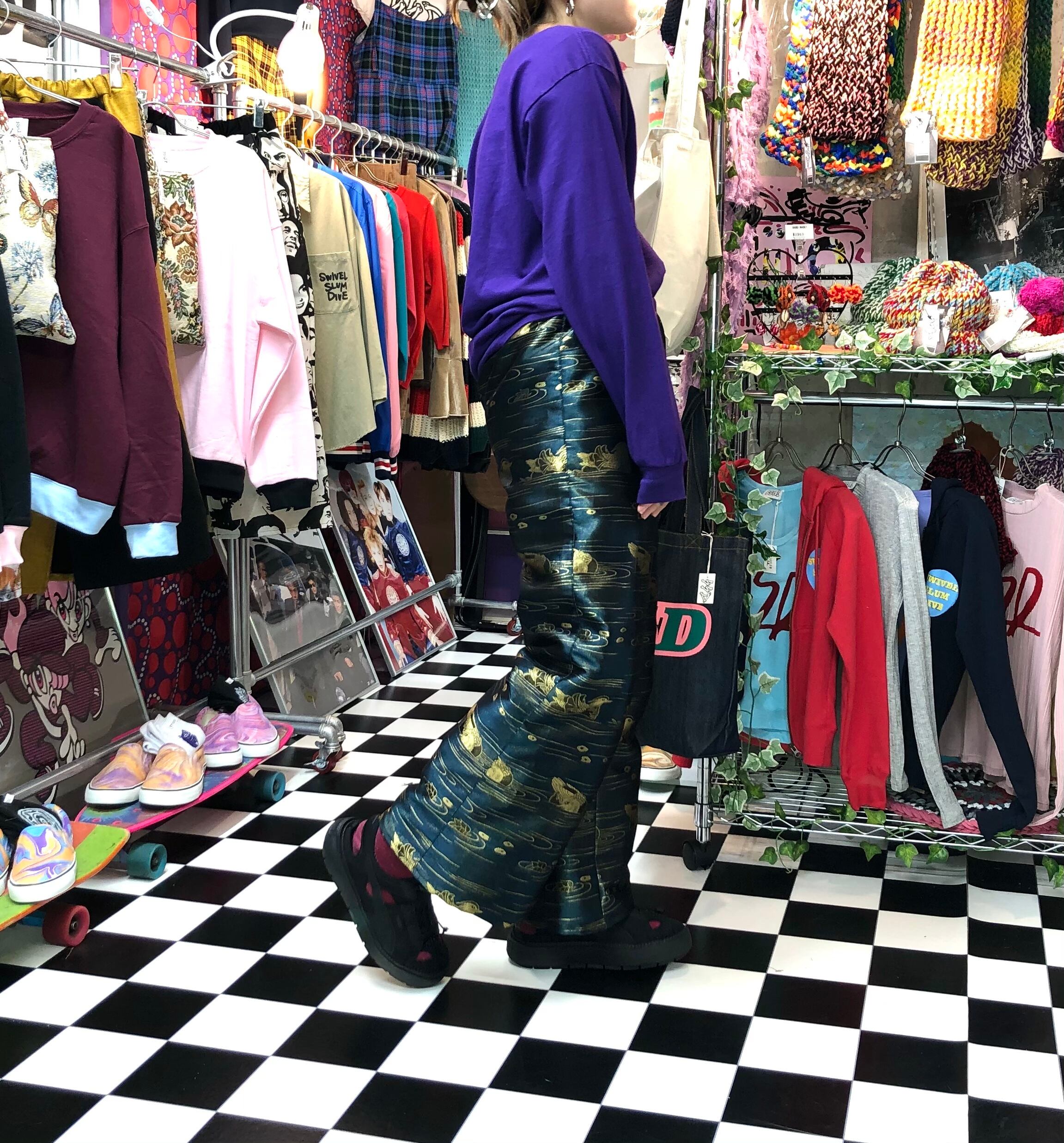 カモ柄 和柄 裏地付きチャイナワイドパンツ。