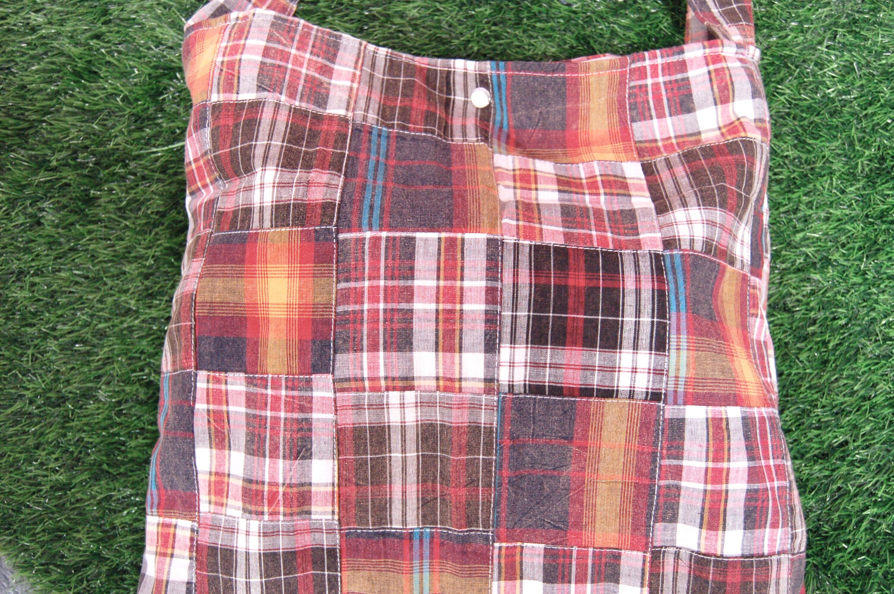 パッチワーク マドラスチェック コットンショルダーバッグ。