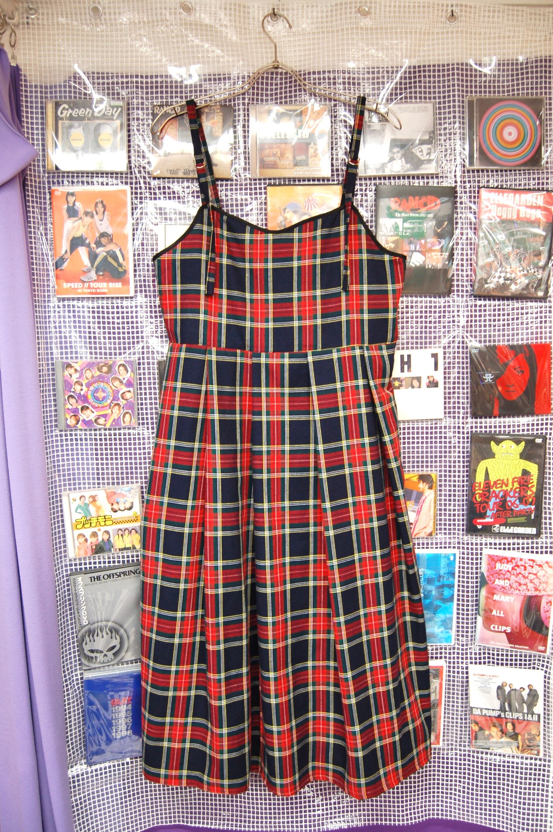 タータンチェック コットンプリーツロングワンピース:ネイビー×レッド