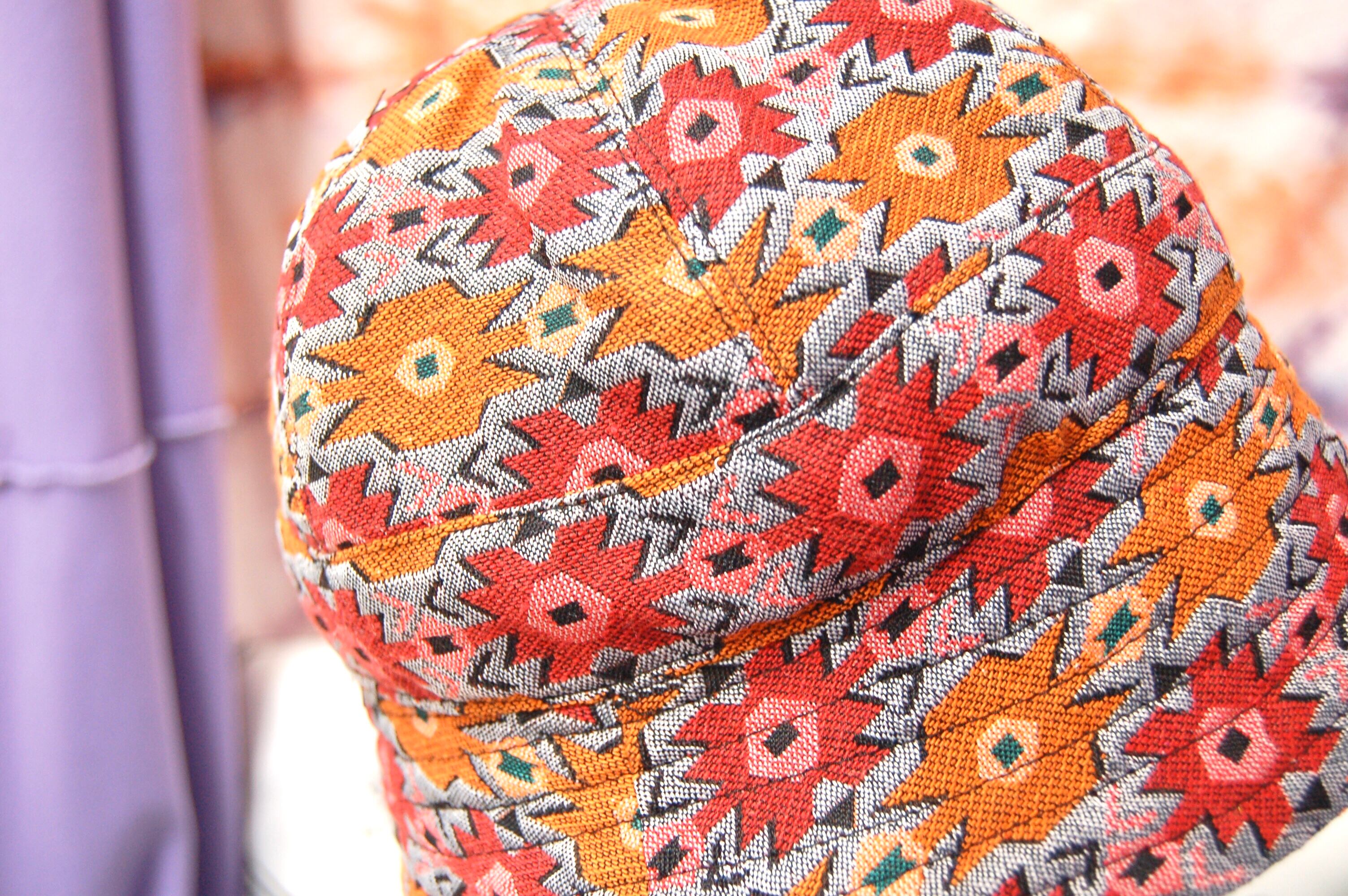 ネパール製 ダカ織生地 幾何模様バケットハット。