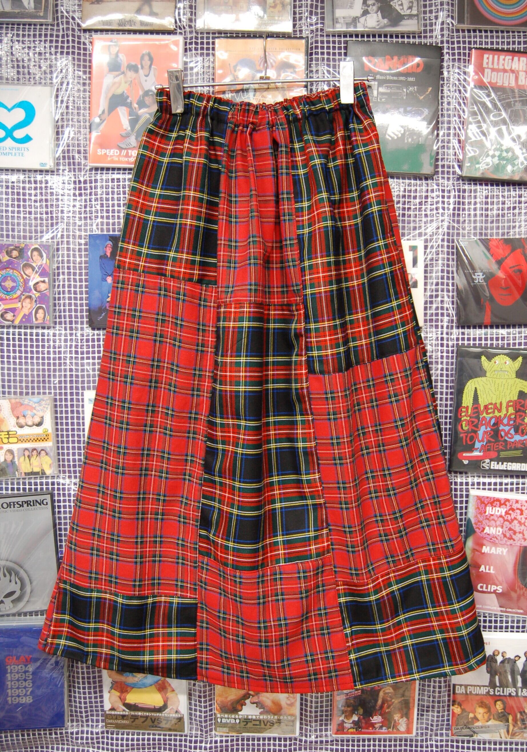 タータンチェックミックス パッチワークデザインーフレアロングスカート。