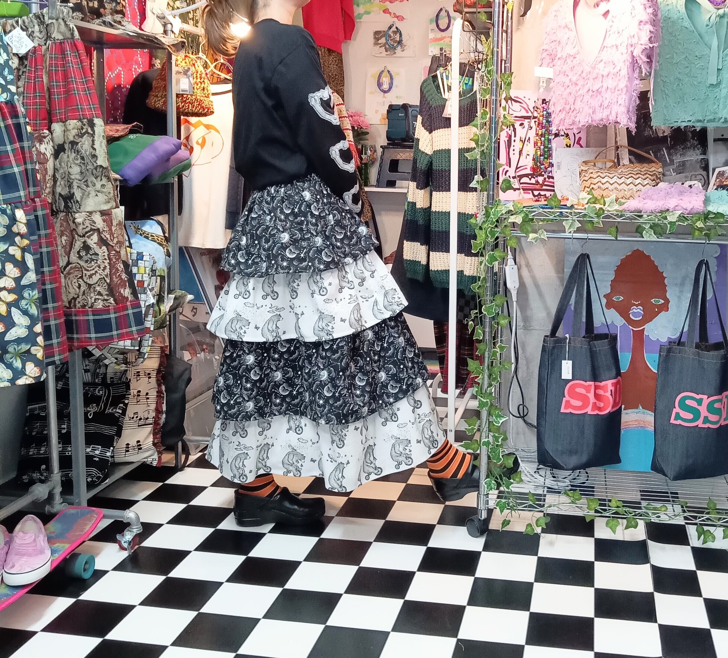 月星夜空×ベア ミック 4段フリルティアードロングスカート。