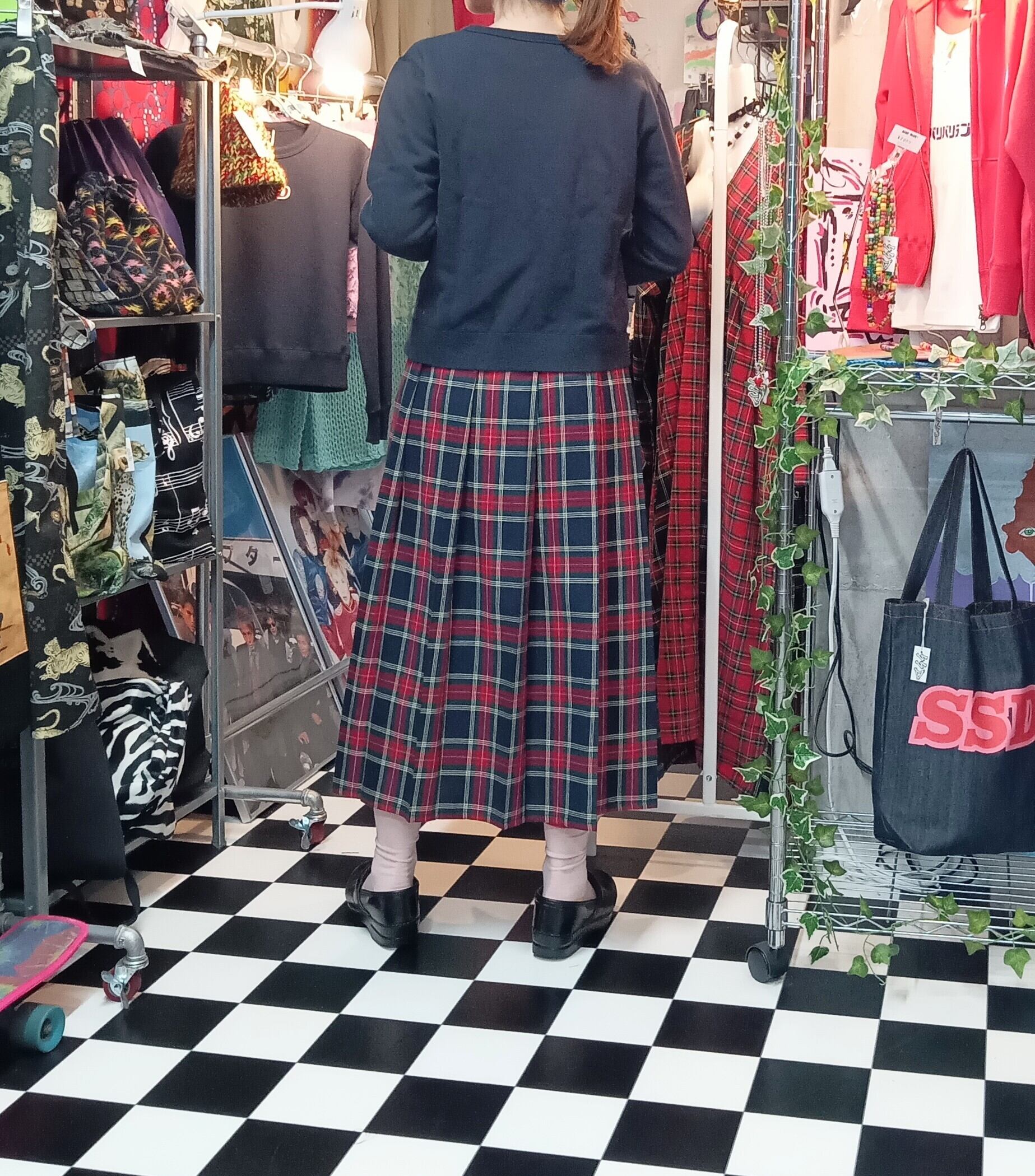 タータンチェック コットンプリーツロングスカート:ネイビー