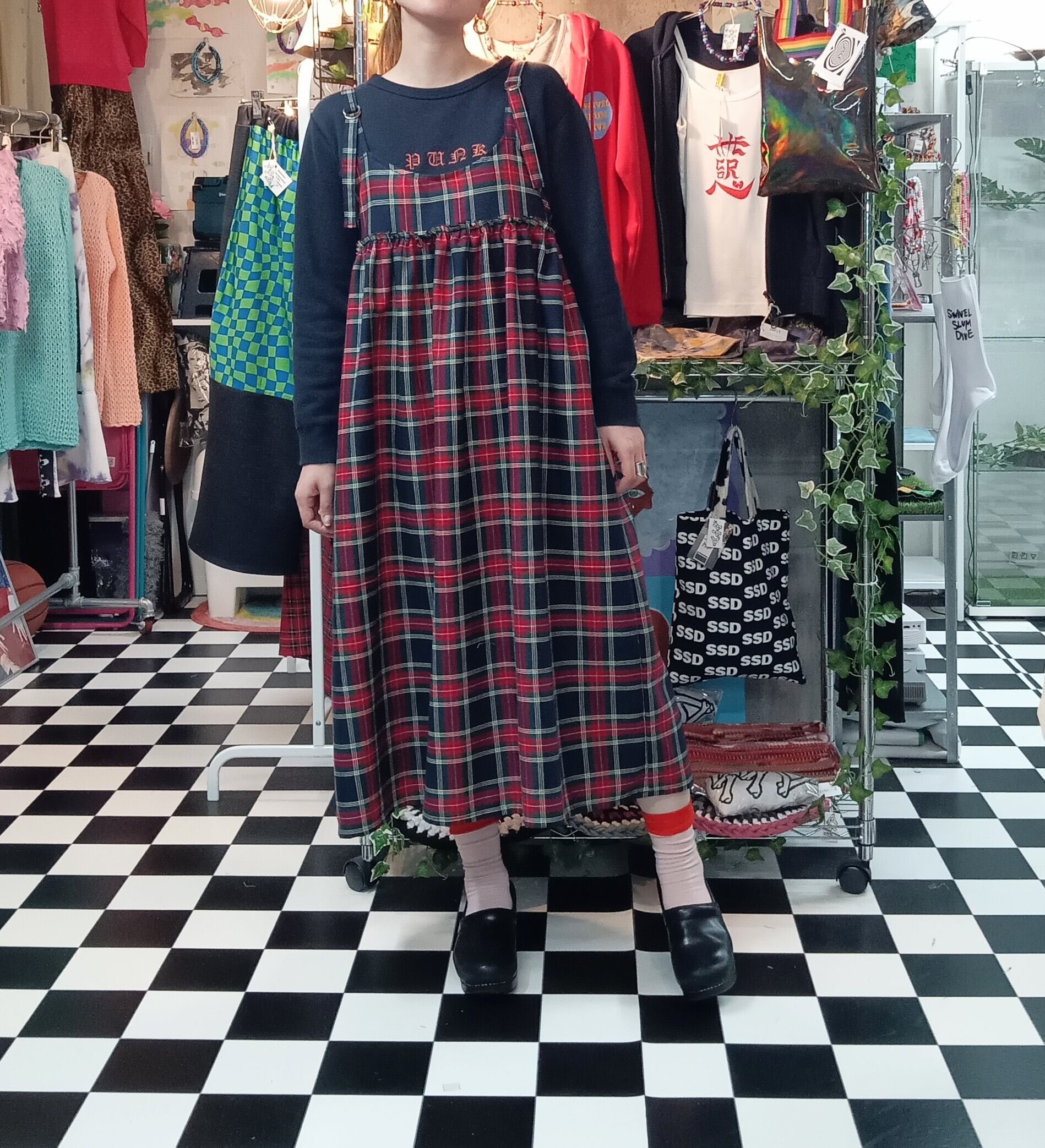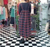 タータンチェック キャミソールギャザーワンピース:ネイビー